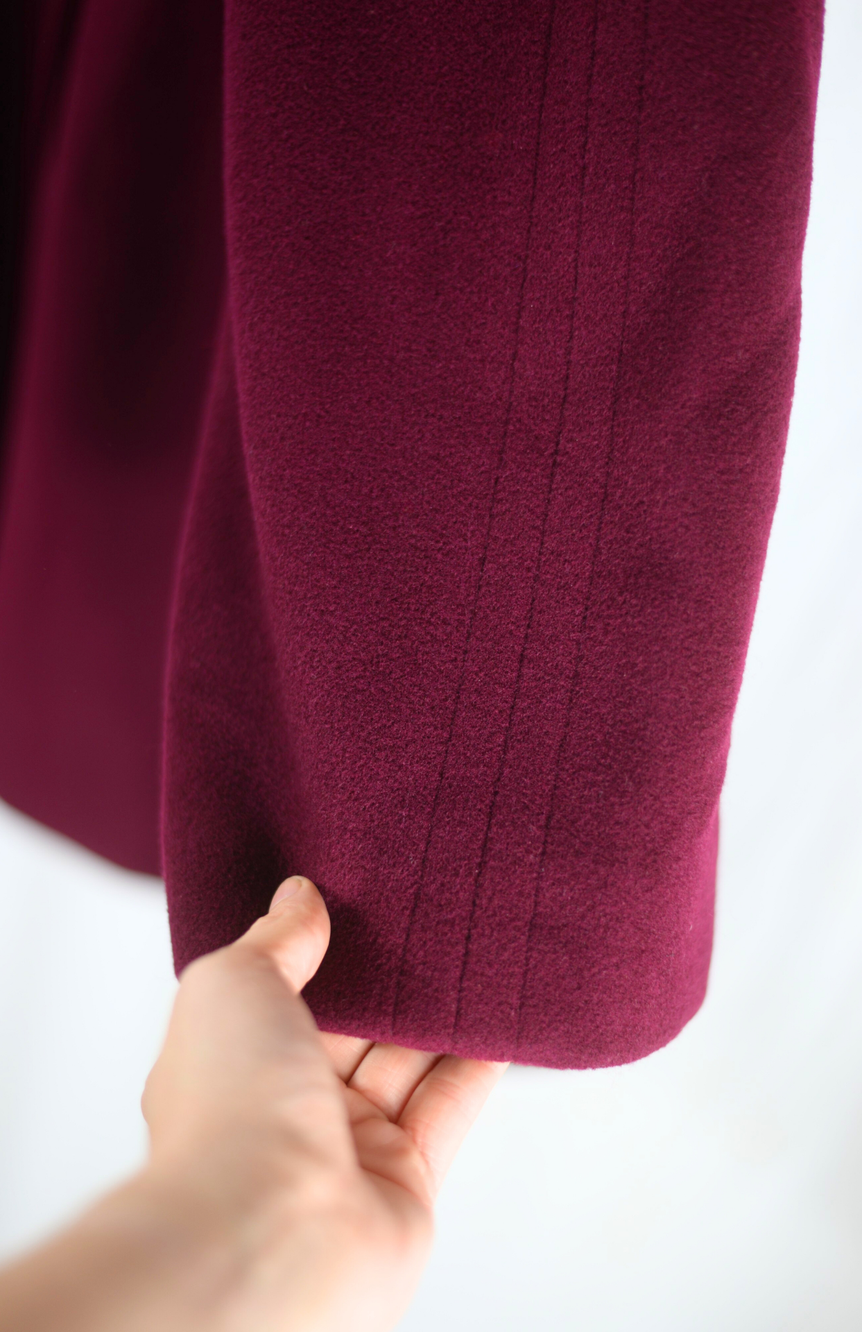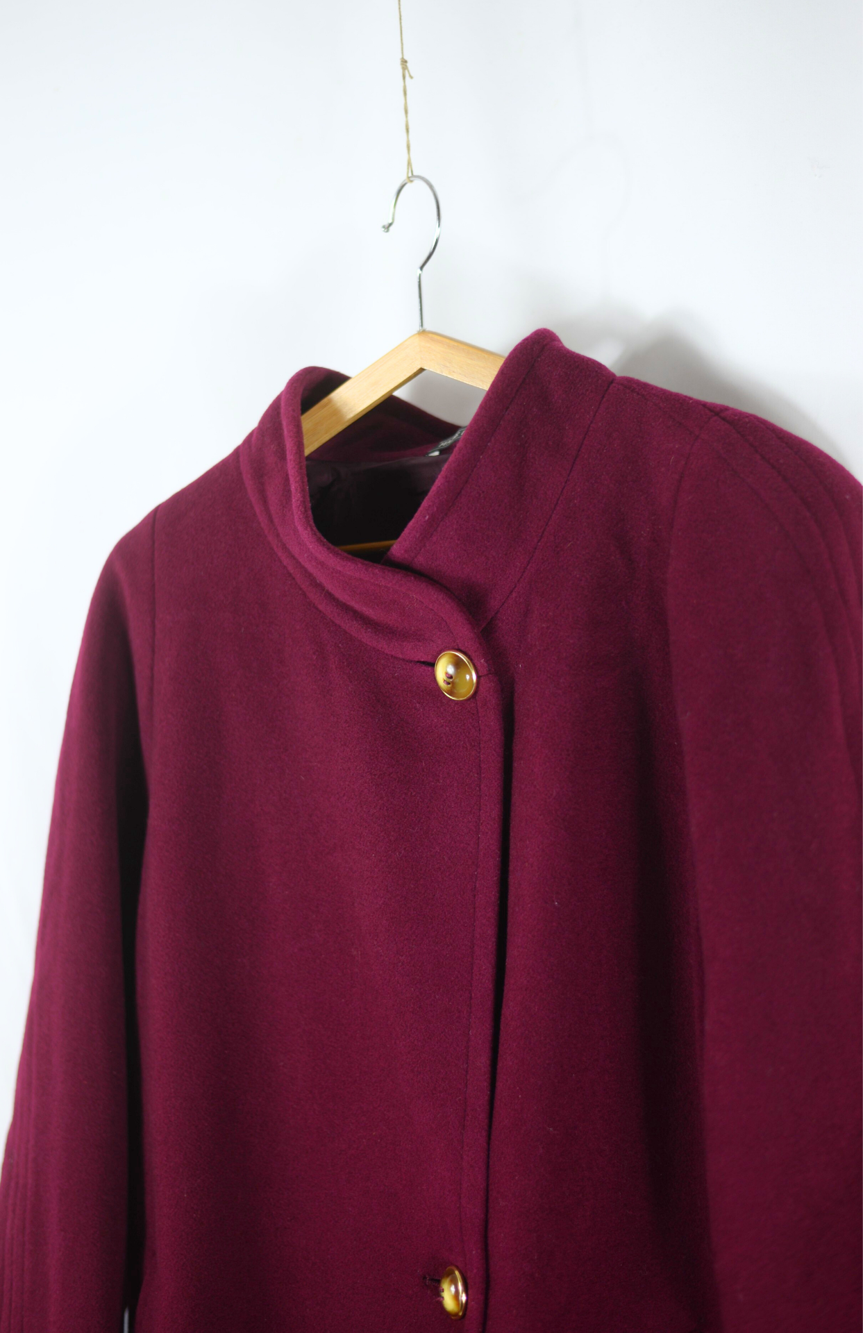 Burgundy vlněný vintage kabát s kašmírem a angorou L