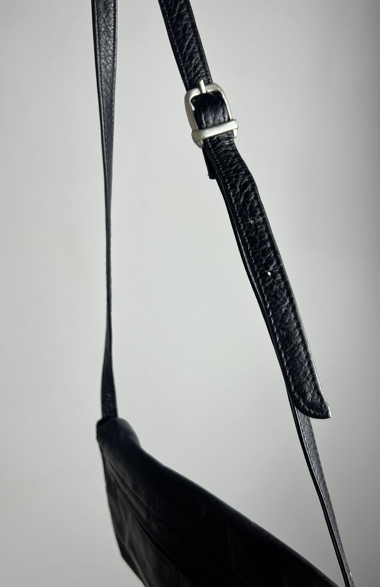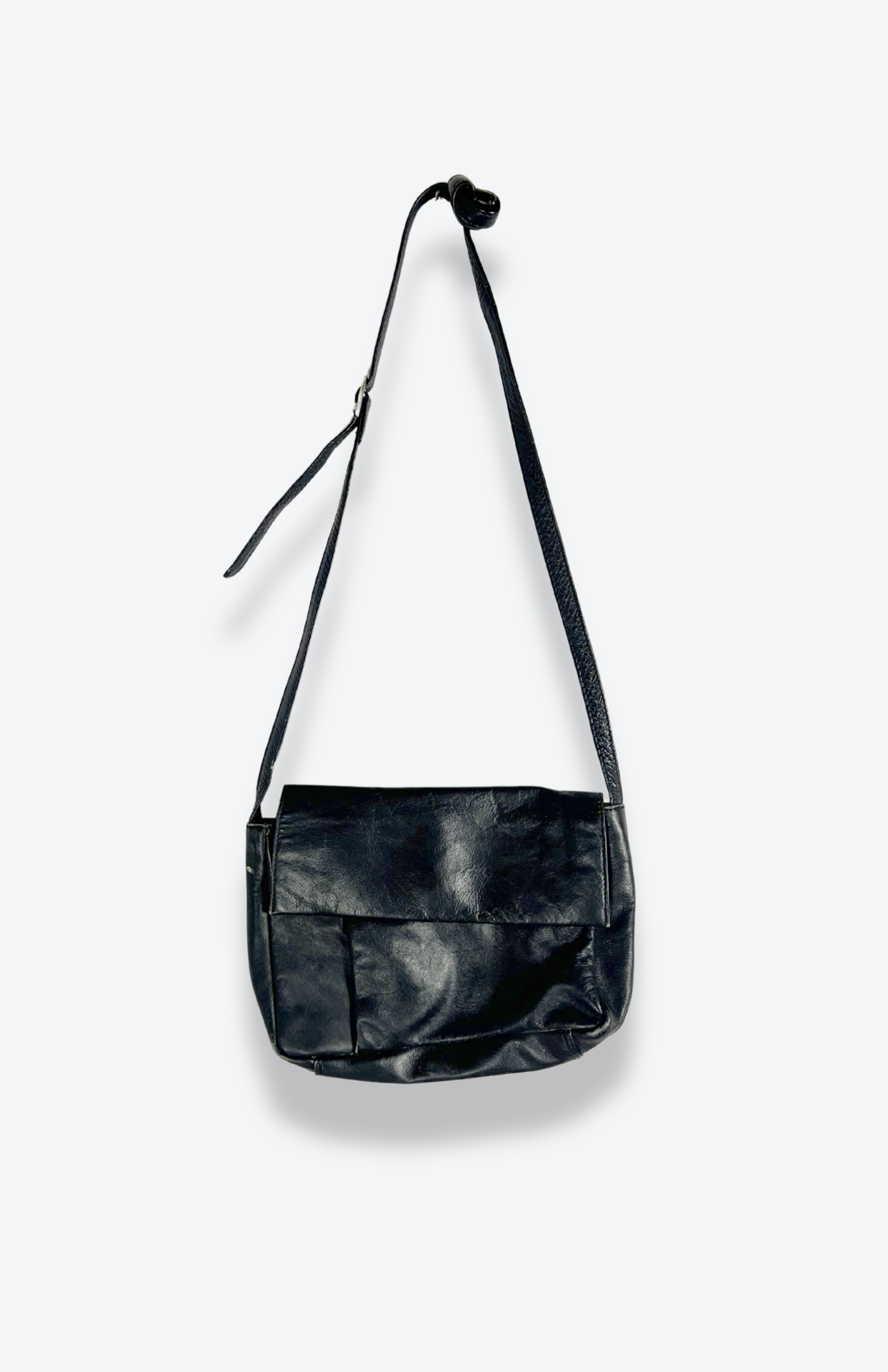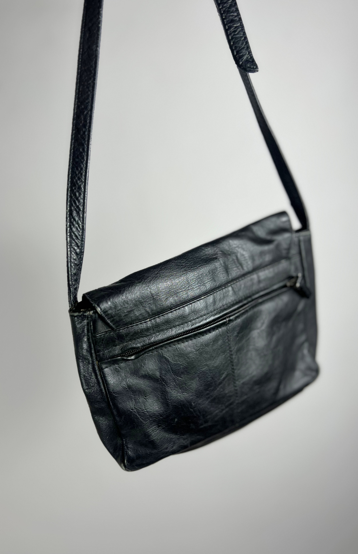 Černá retro kožená kabelka. Šikovný minimal kousek. Má zapínání na patent a uvnitř malé kapsy na drobnosti. Nastavitelný popruh.