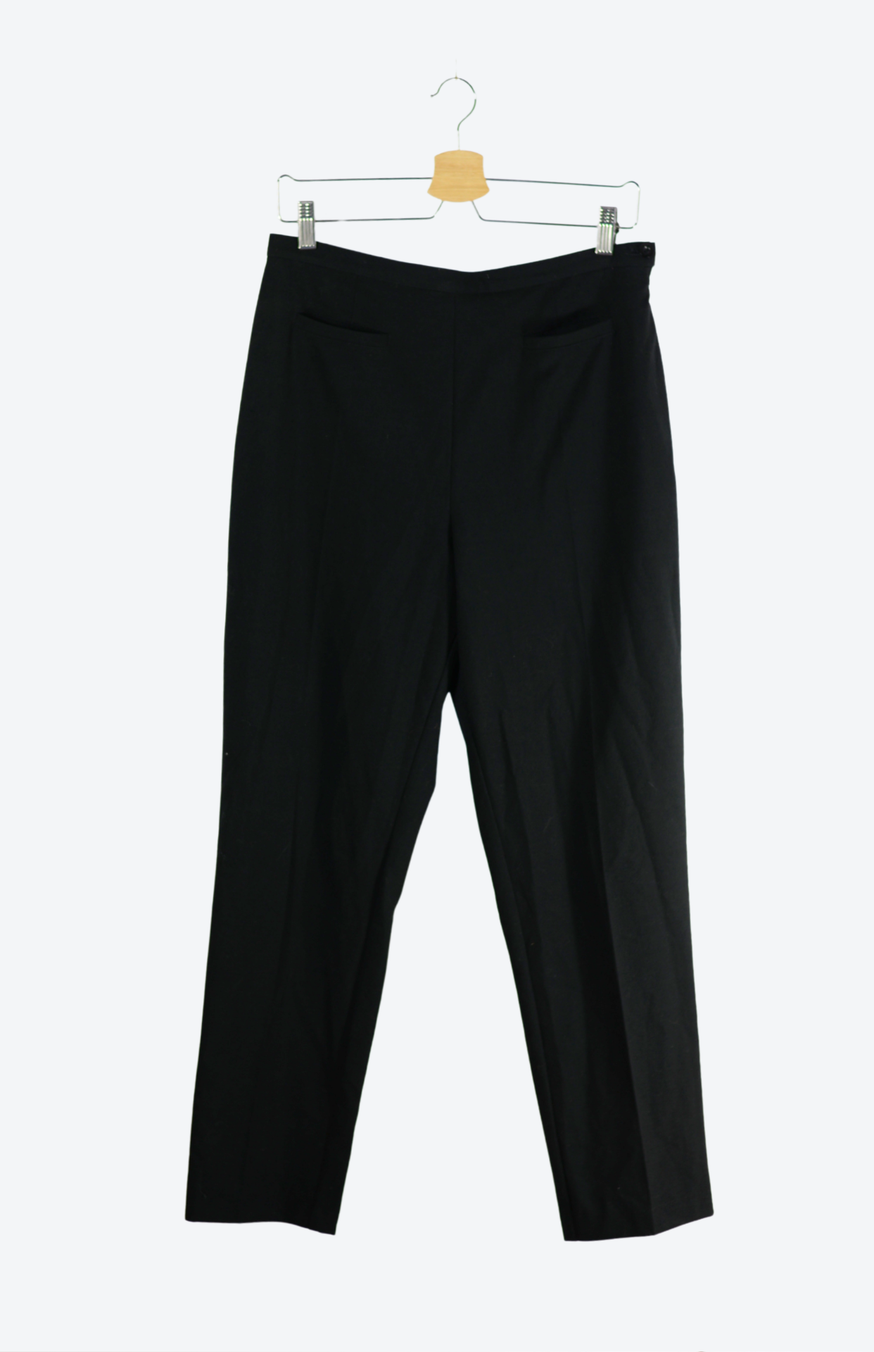 Černé elegantní společenské kalhoty do pasu. Mají jemné puky a kapsy vzadu. Zapínání na boku na zip a knoflíček.