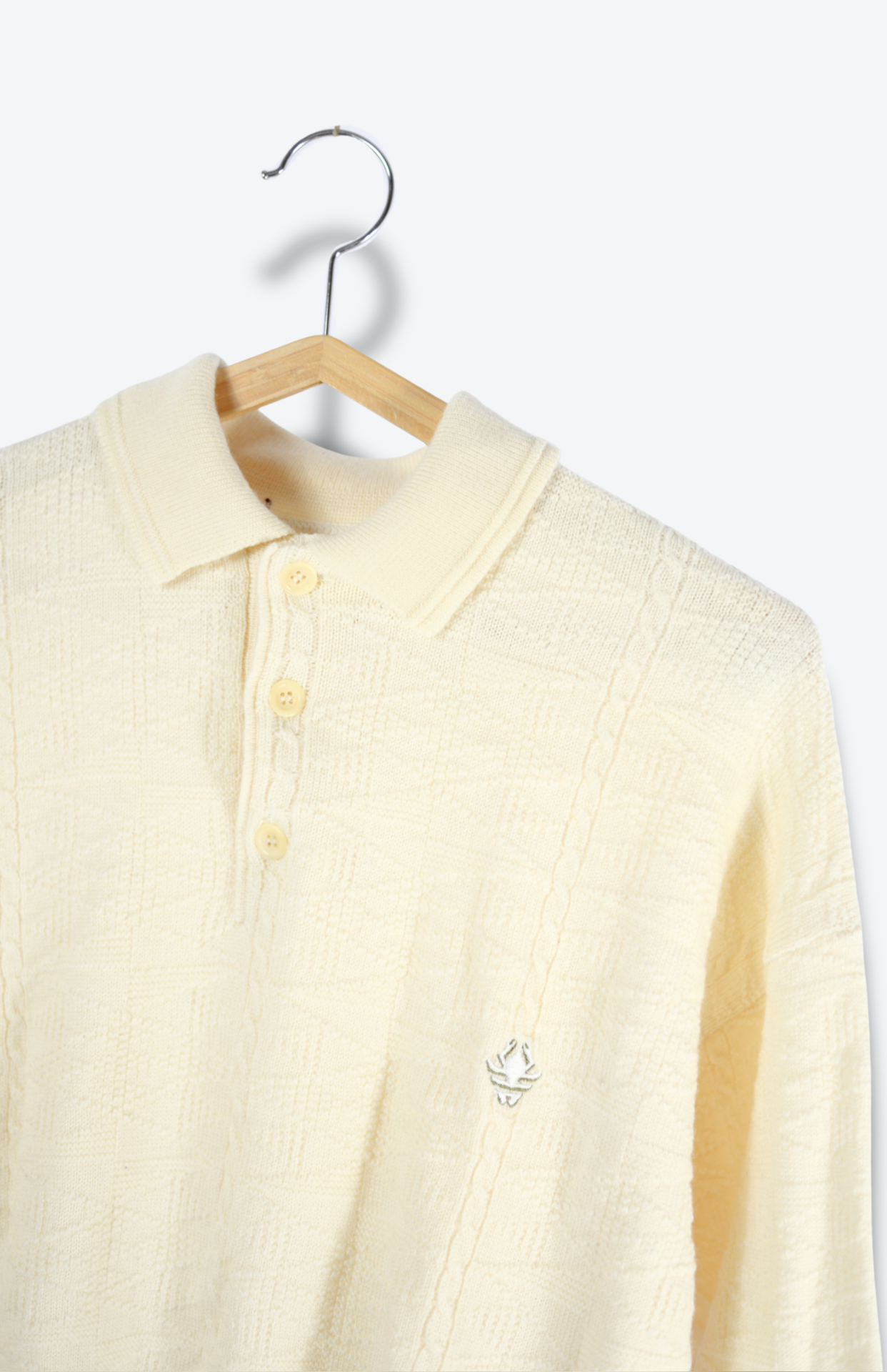Krásný krémový čistě vlněný svetr. Má drobný úpletový vzor, drobnou výšivku a límeček. Velmi pěkně zpracovaný a příjemný na omak. Střední, tak akorát teplý úplet který nekouše. Unisex vintage kousek.