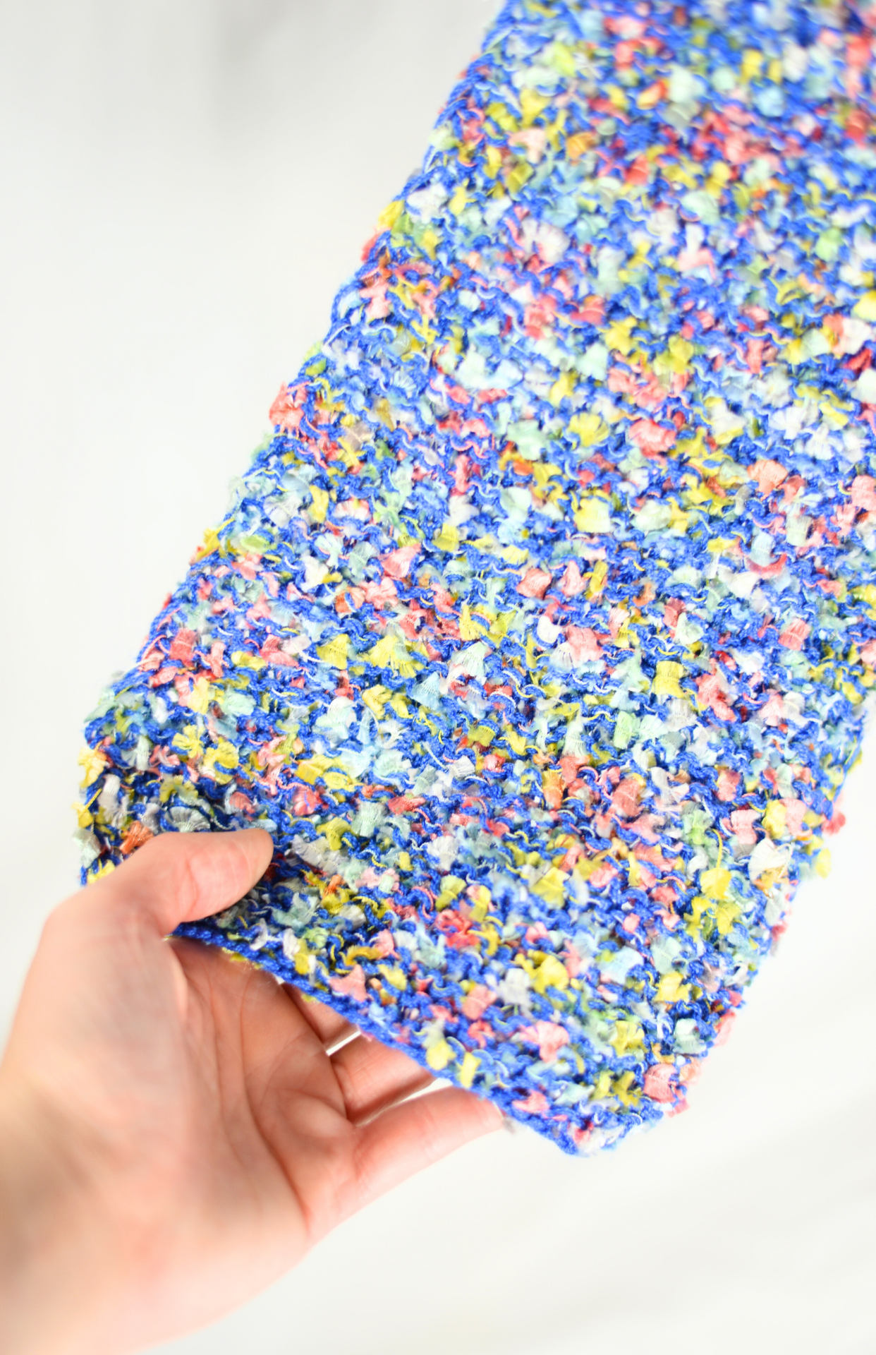 Fluffy retro šála. Hodně dlouhá a s barevnými uzlíky.