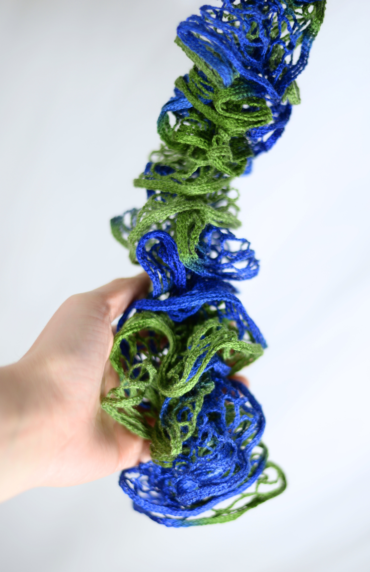 Retro šála ve stylu medůzového boa. Zeleno-modré. Originální kousek, který vystřelí i obyčejný outfit do 90´s nebe.