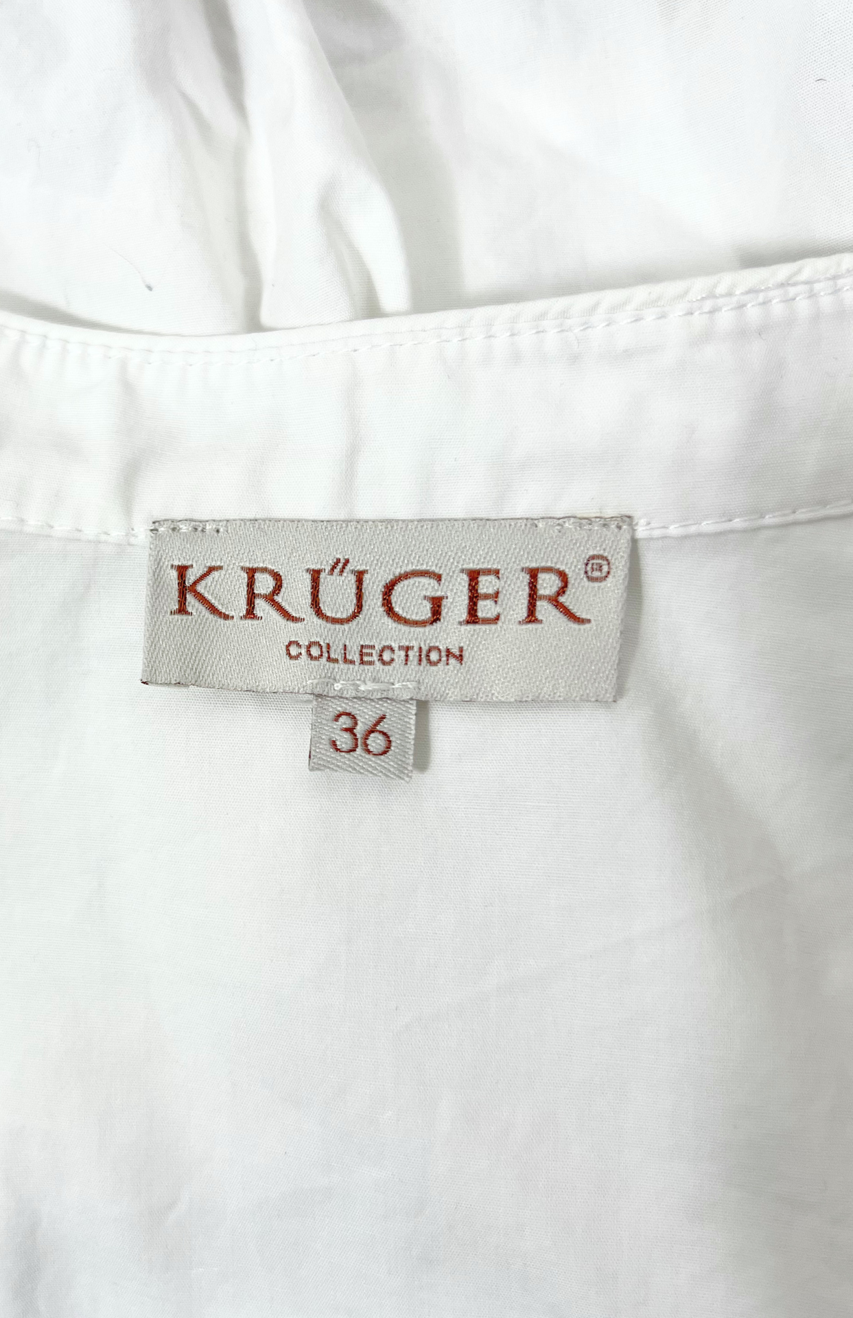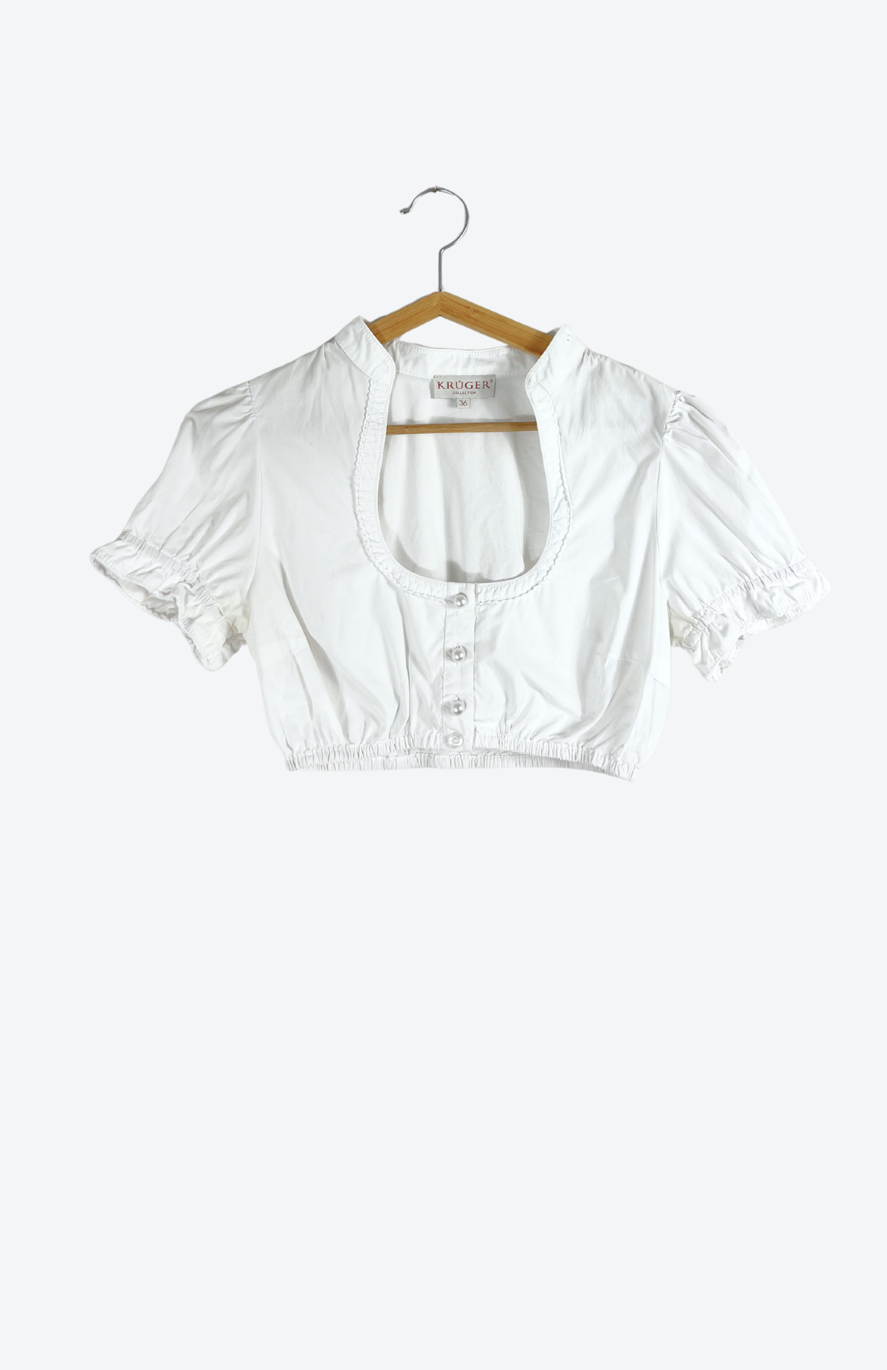 Folklorní crop bílá halenka. Nabíraná, lehoučká a propínací na perličky na středu.