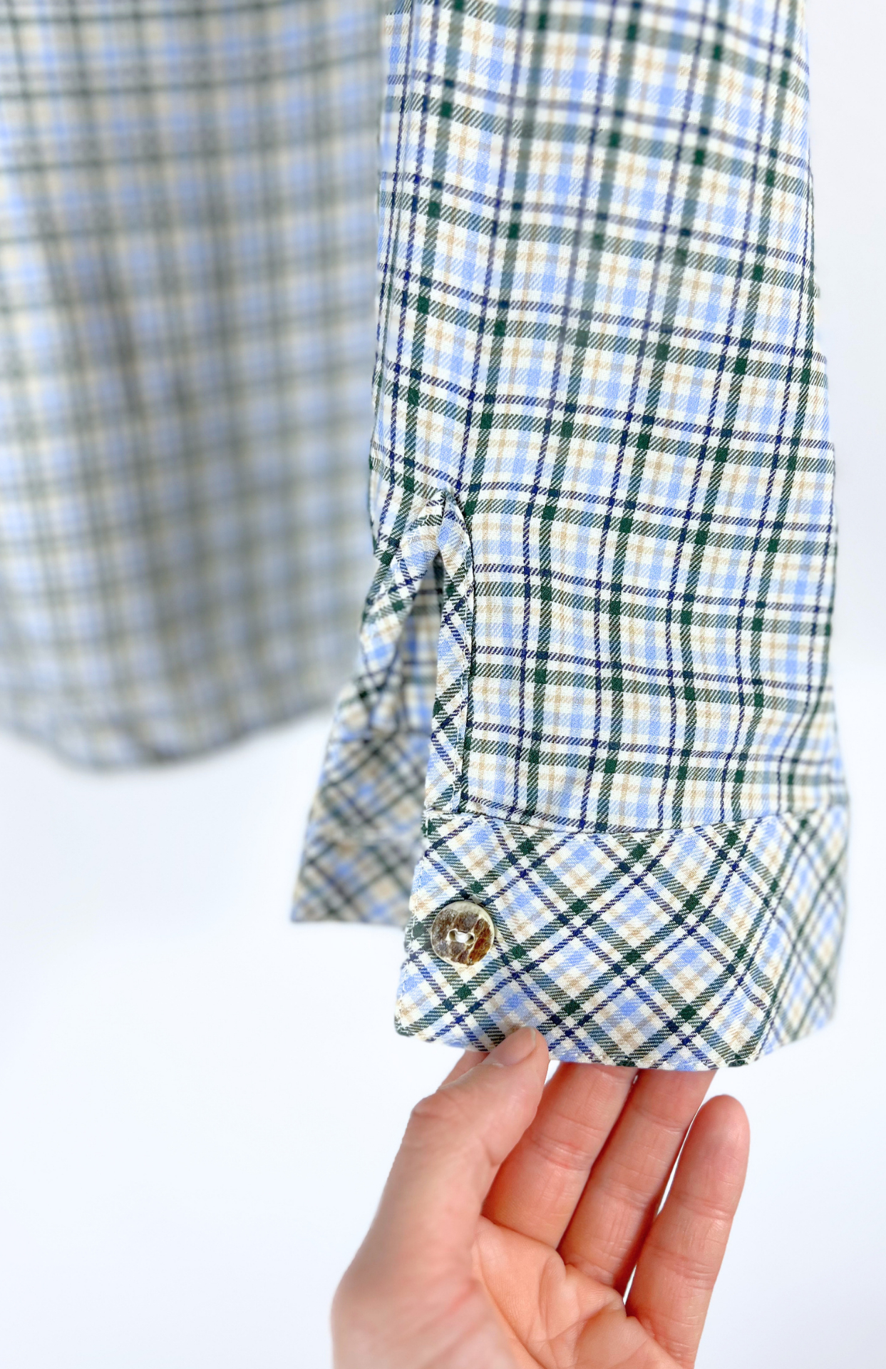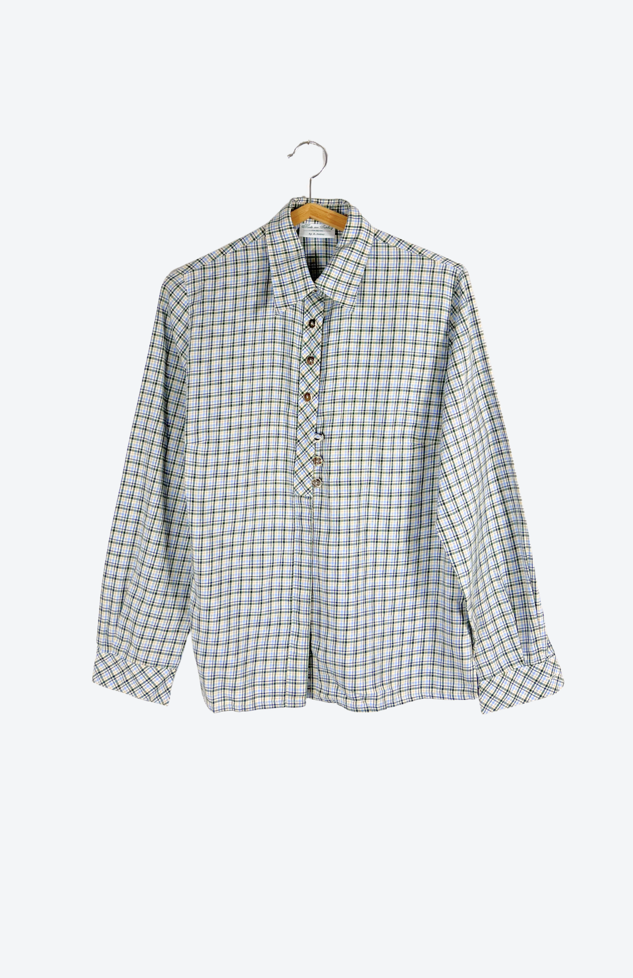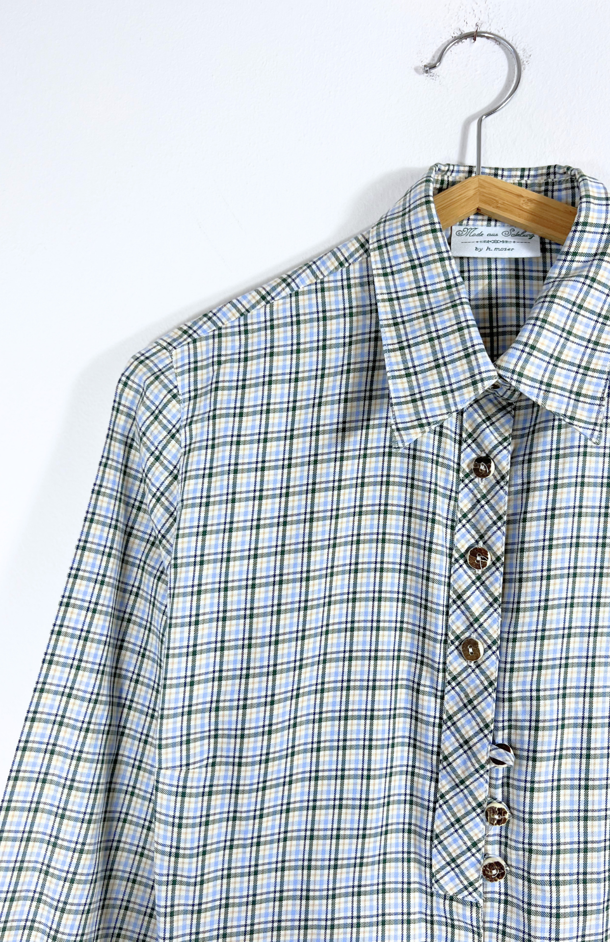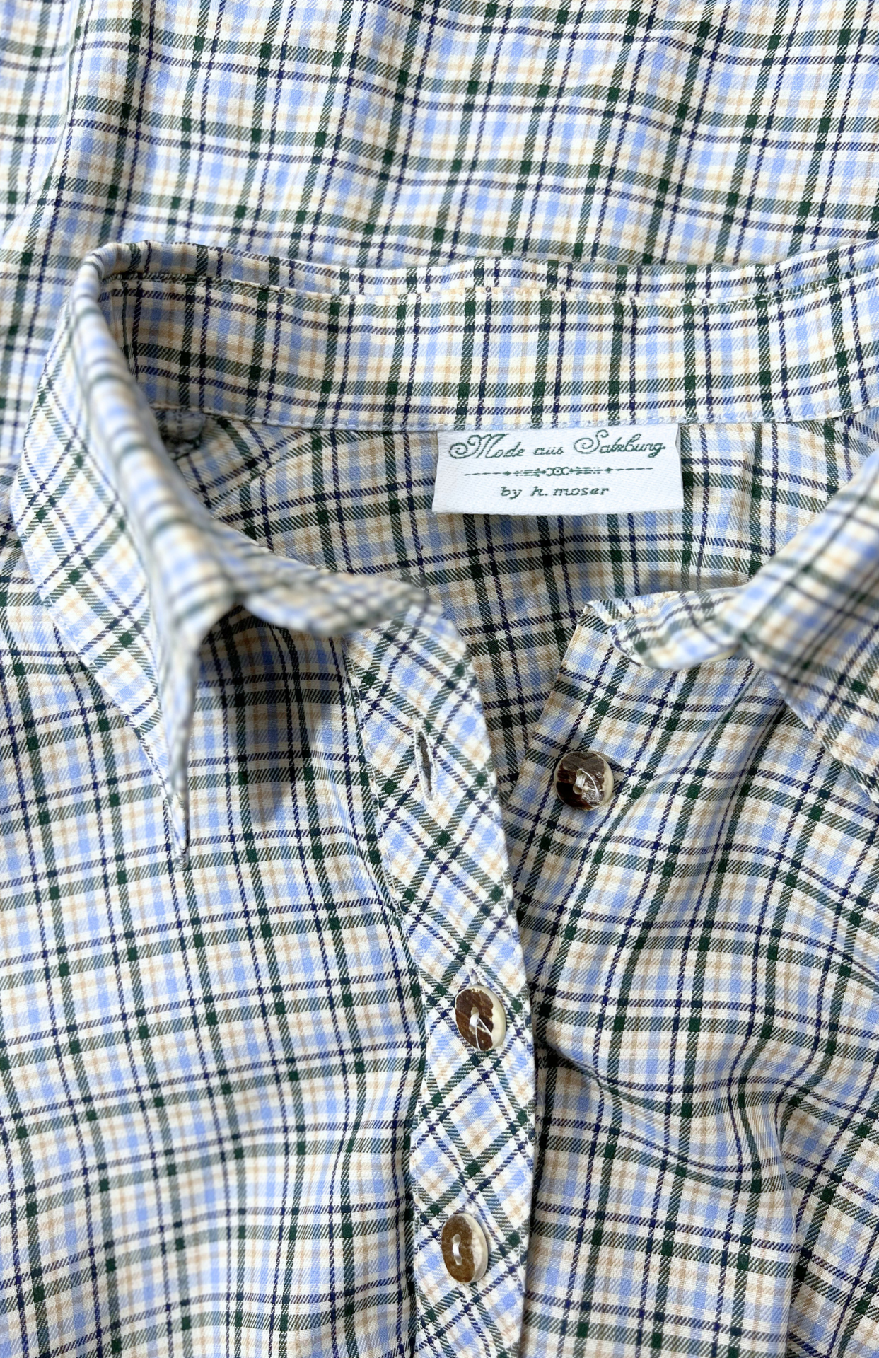 Trachtová košile s kostkou. Má rustikální drobné knoflíky a příjemné, tenké bavlněné plátno.