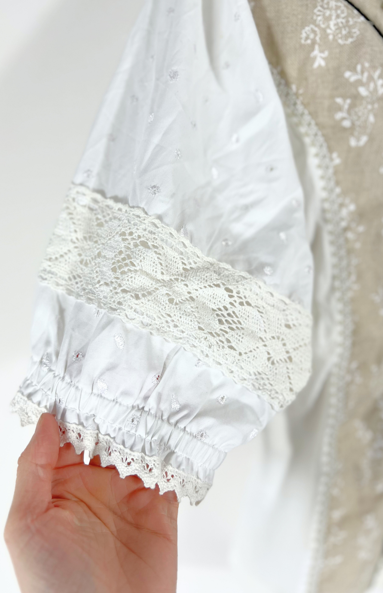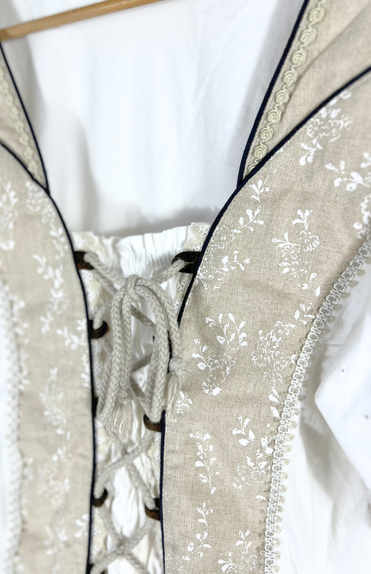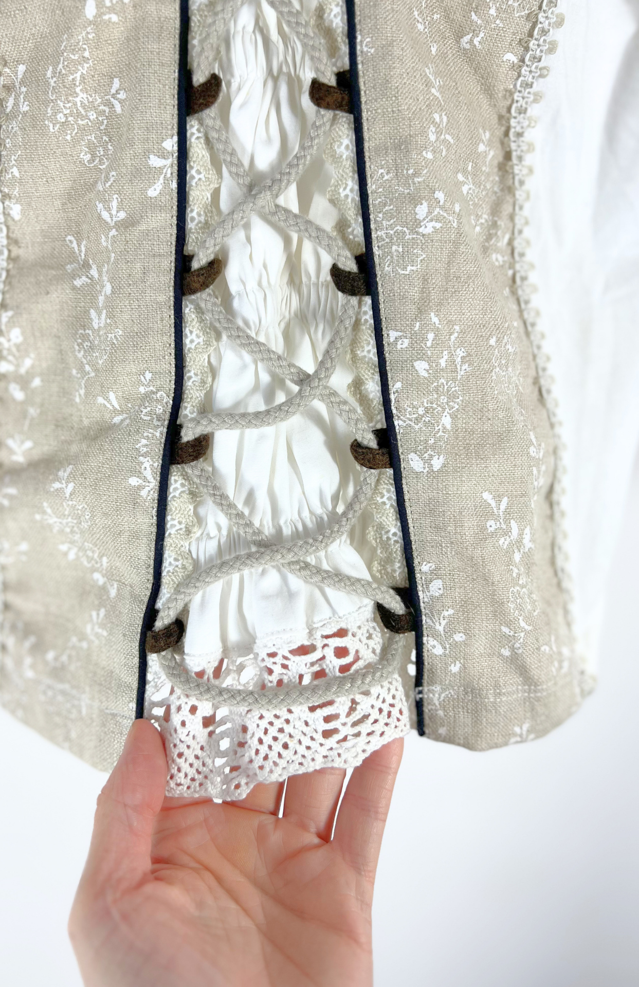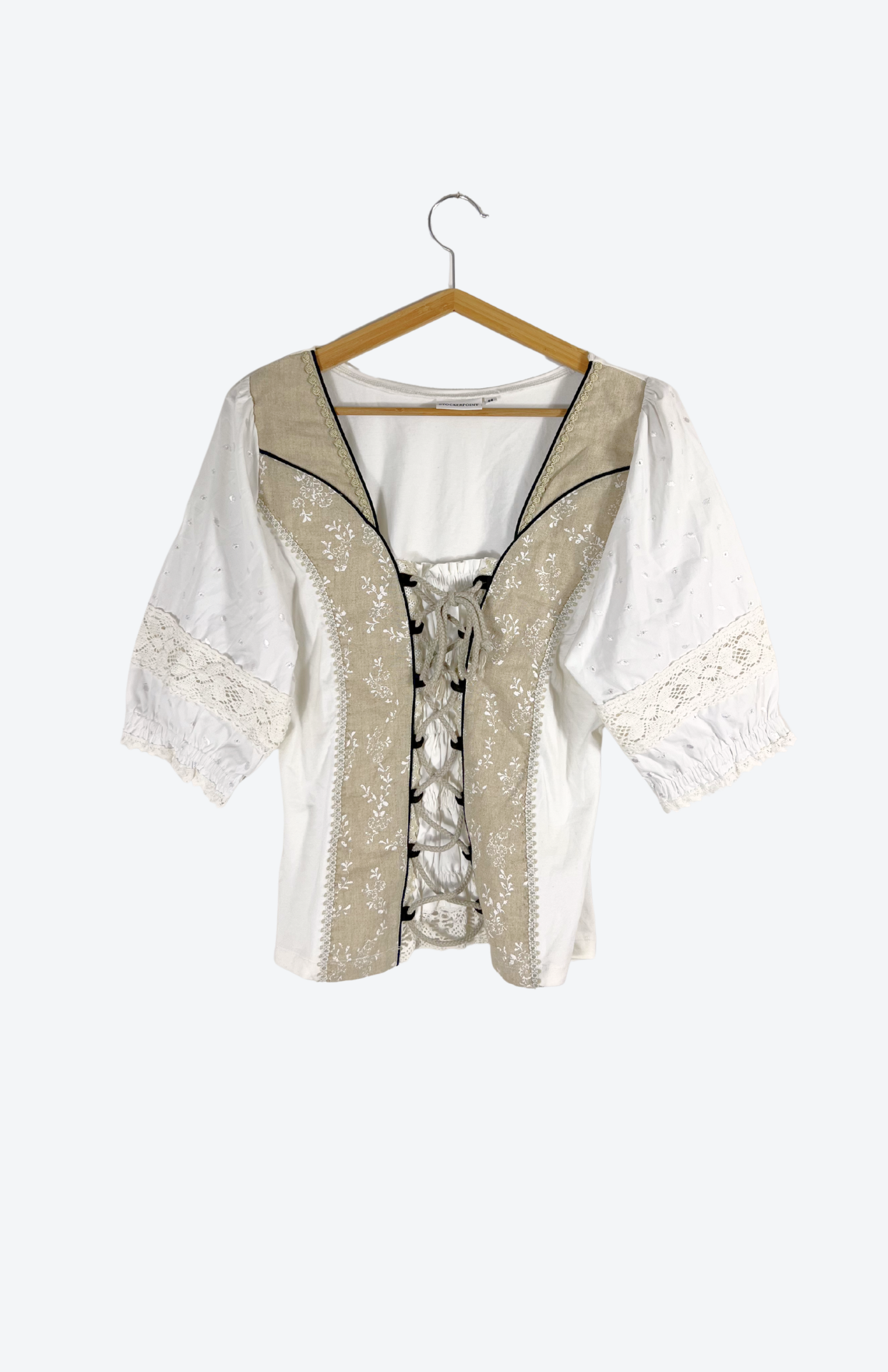 Folklorní vintage halenka se šněrováním a výraznou krajkou.