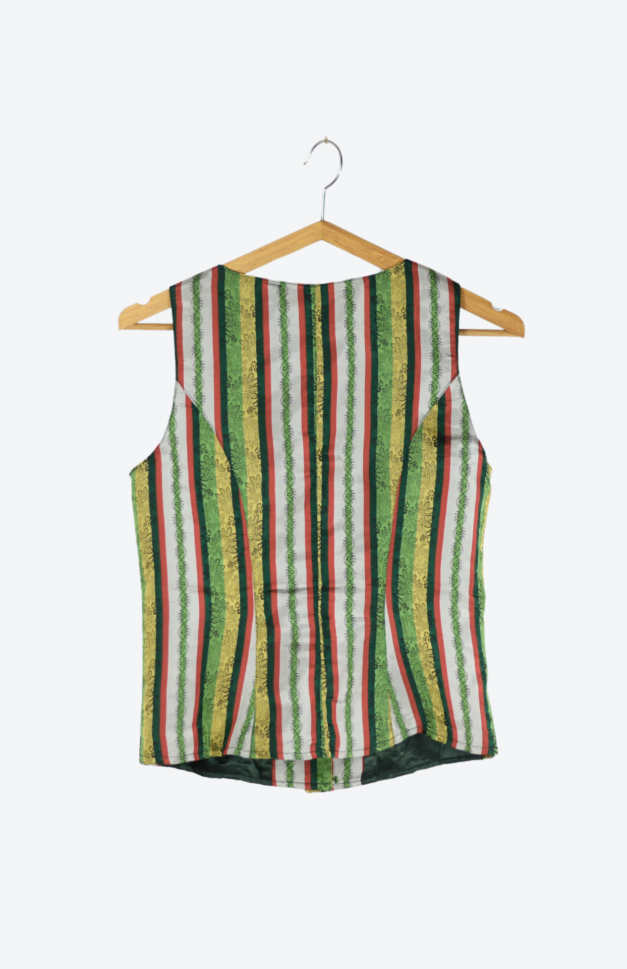 Hedvábná folklorní vintage vesta s proužky Trachten S