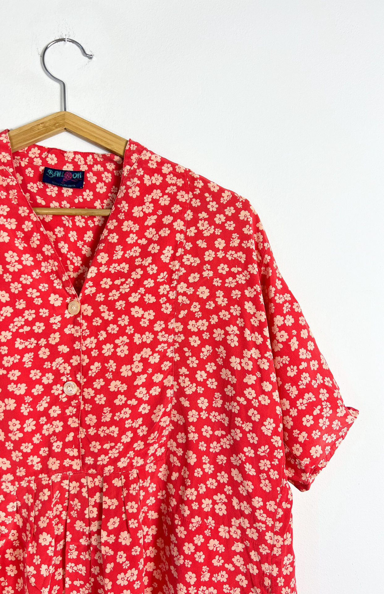 Čistě hedvábné květinové vintage šaty. Mají knoflíčky na hrudi a vzadu vázání v pase. Krásně hebké na omak.