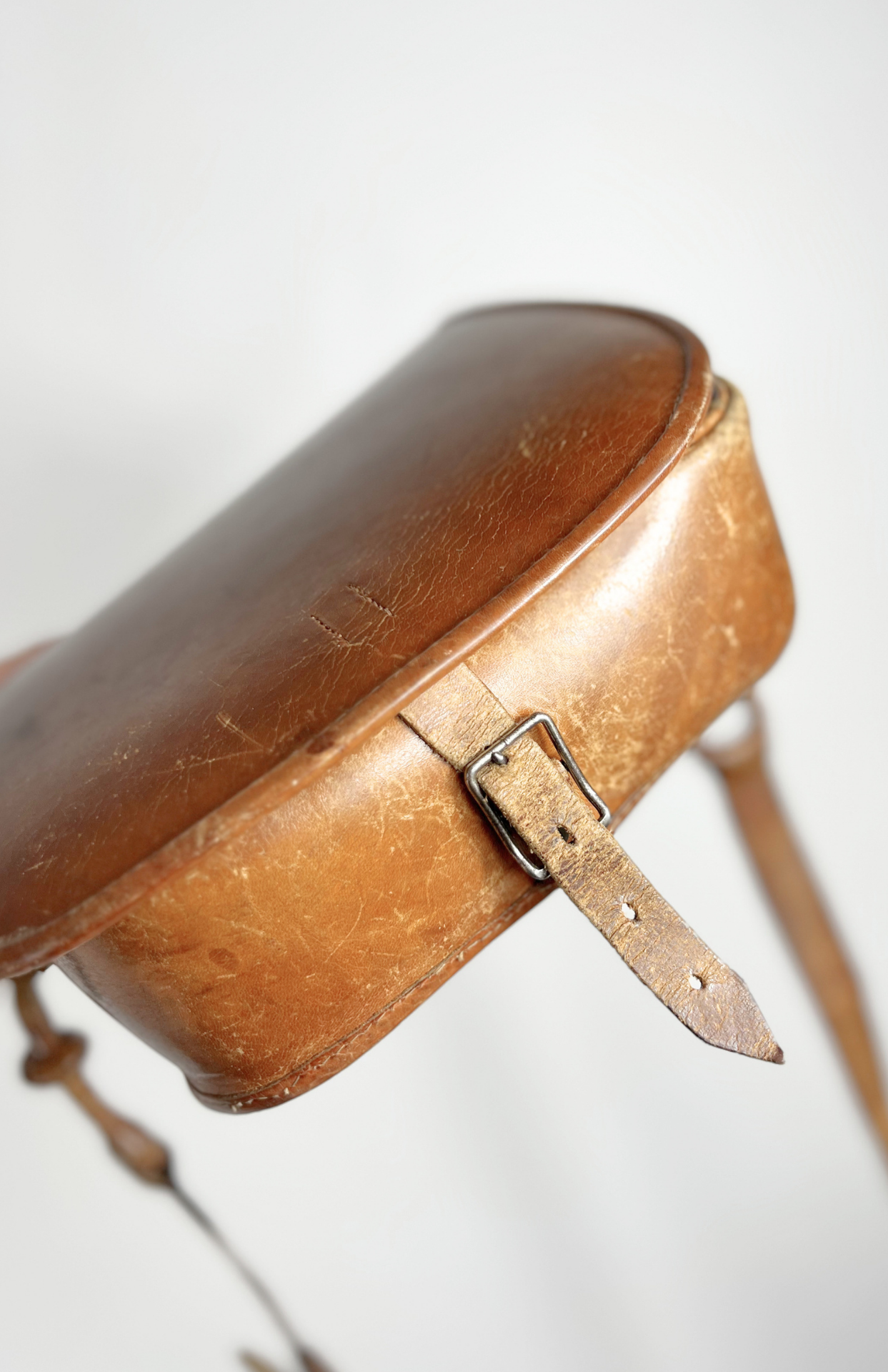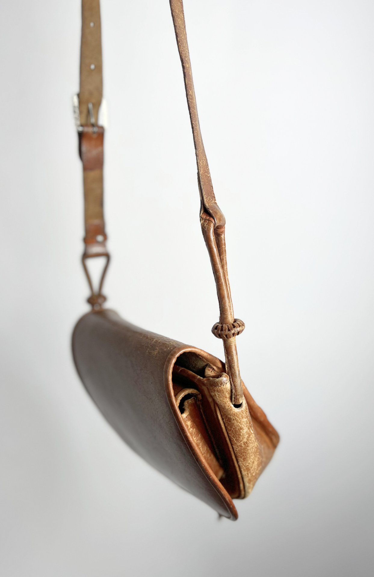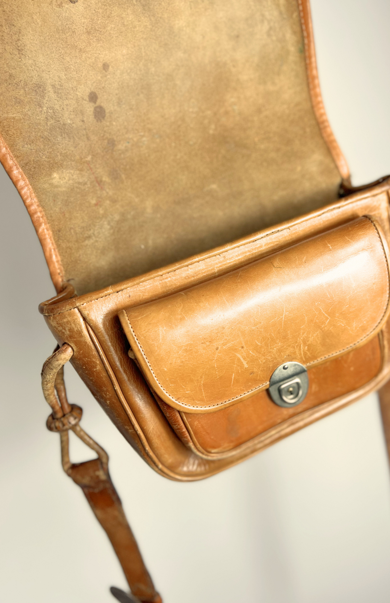 Hnědá kožená retro kabelka. Má pěkné detaily, kapsu na zapínání a řemínek. Popruh je nastavitelný.
