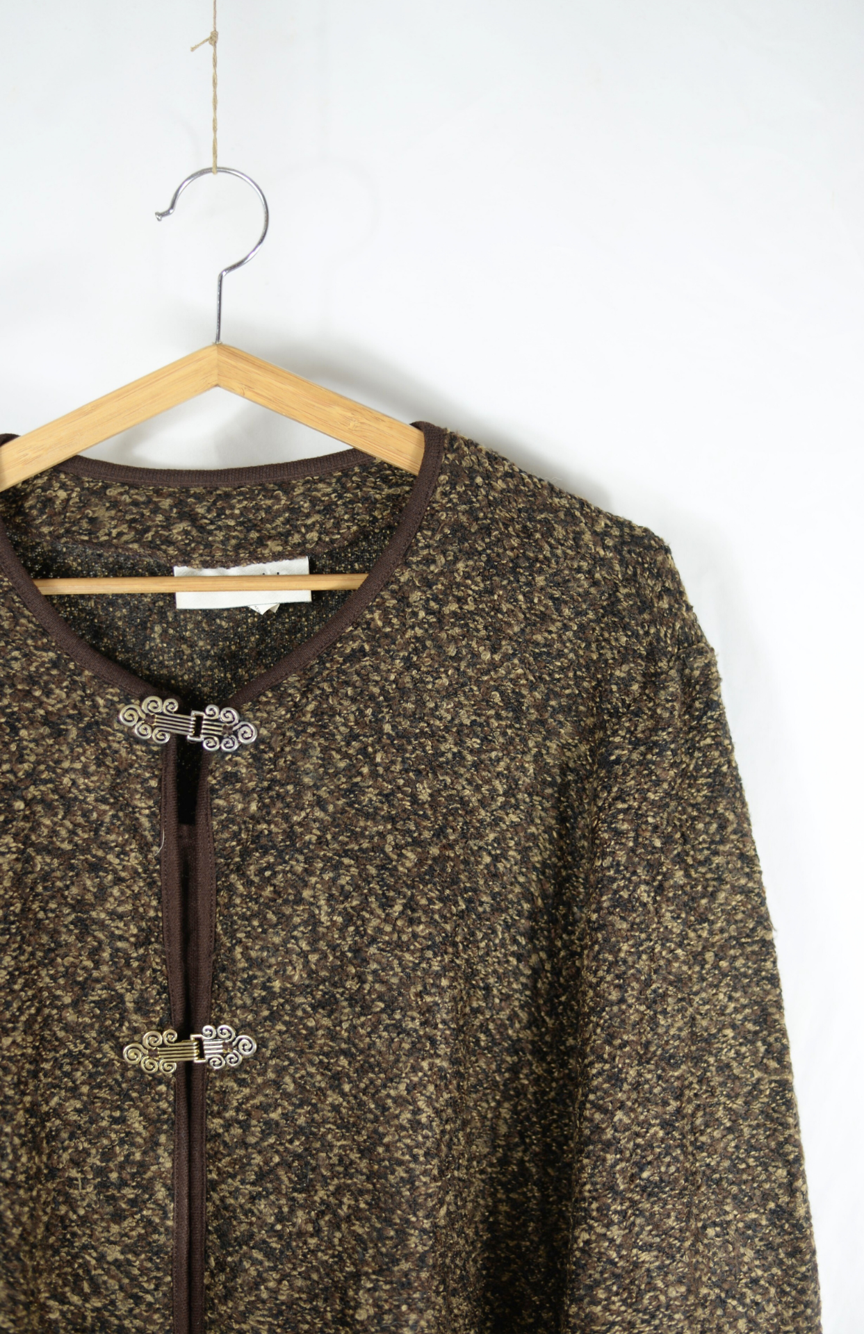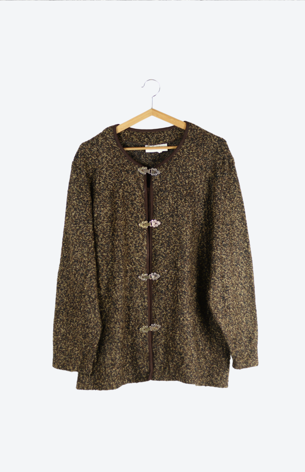 Hnědý norský svetr se zdobenými háčky XL