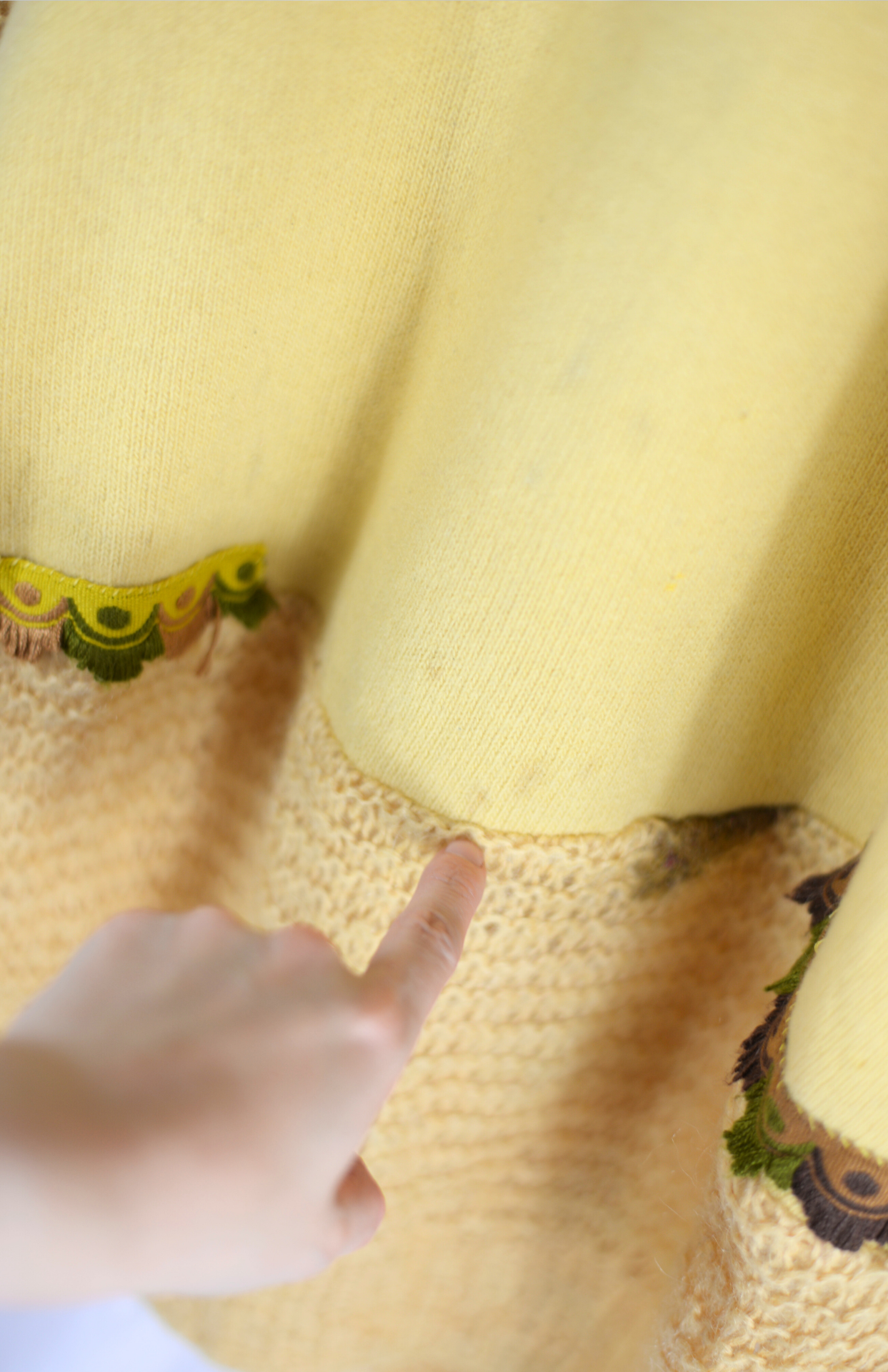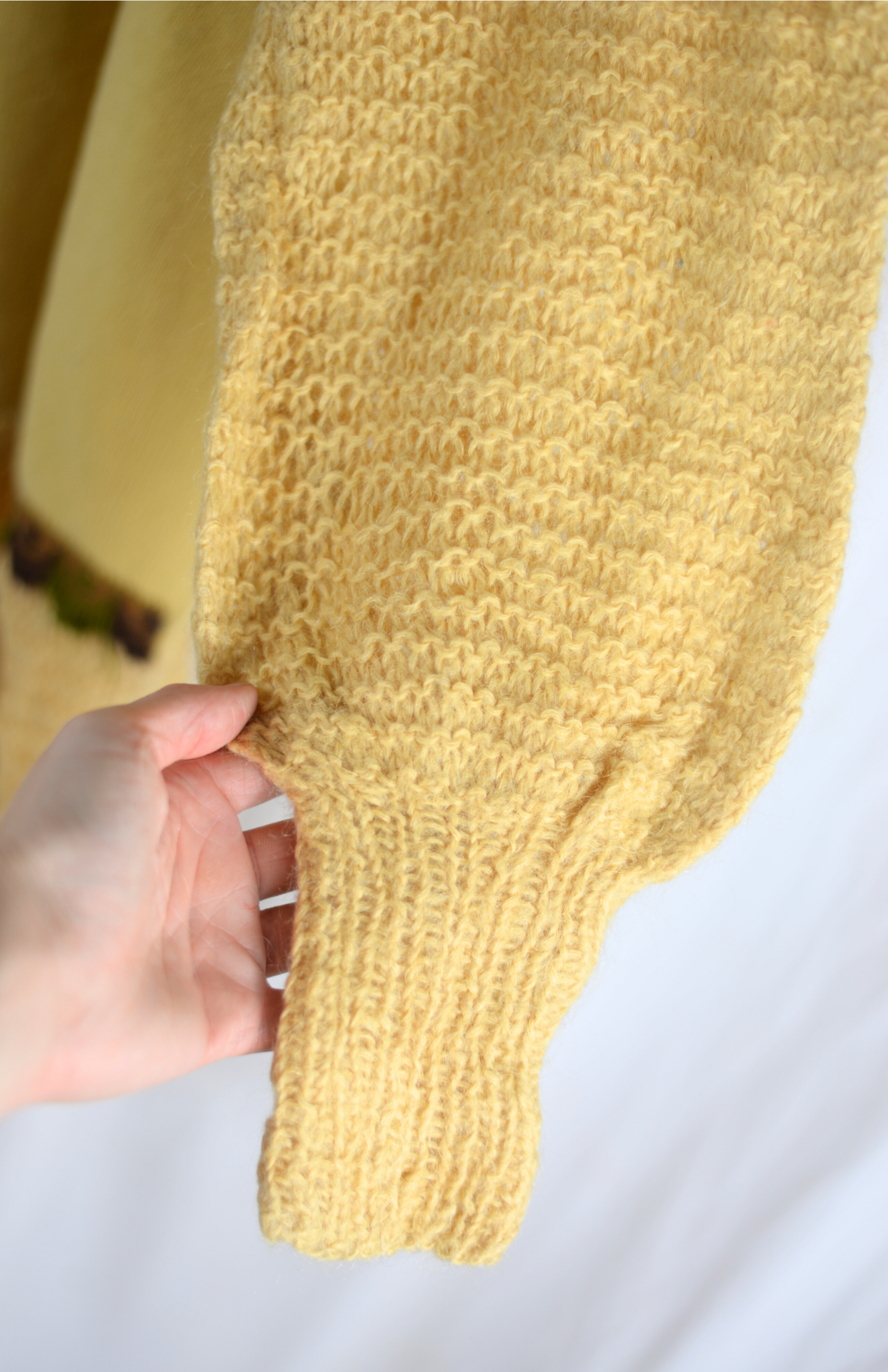 Stav: Vintage kousek v pěkném stavu, pouze pár flíčků v úpletu.