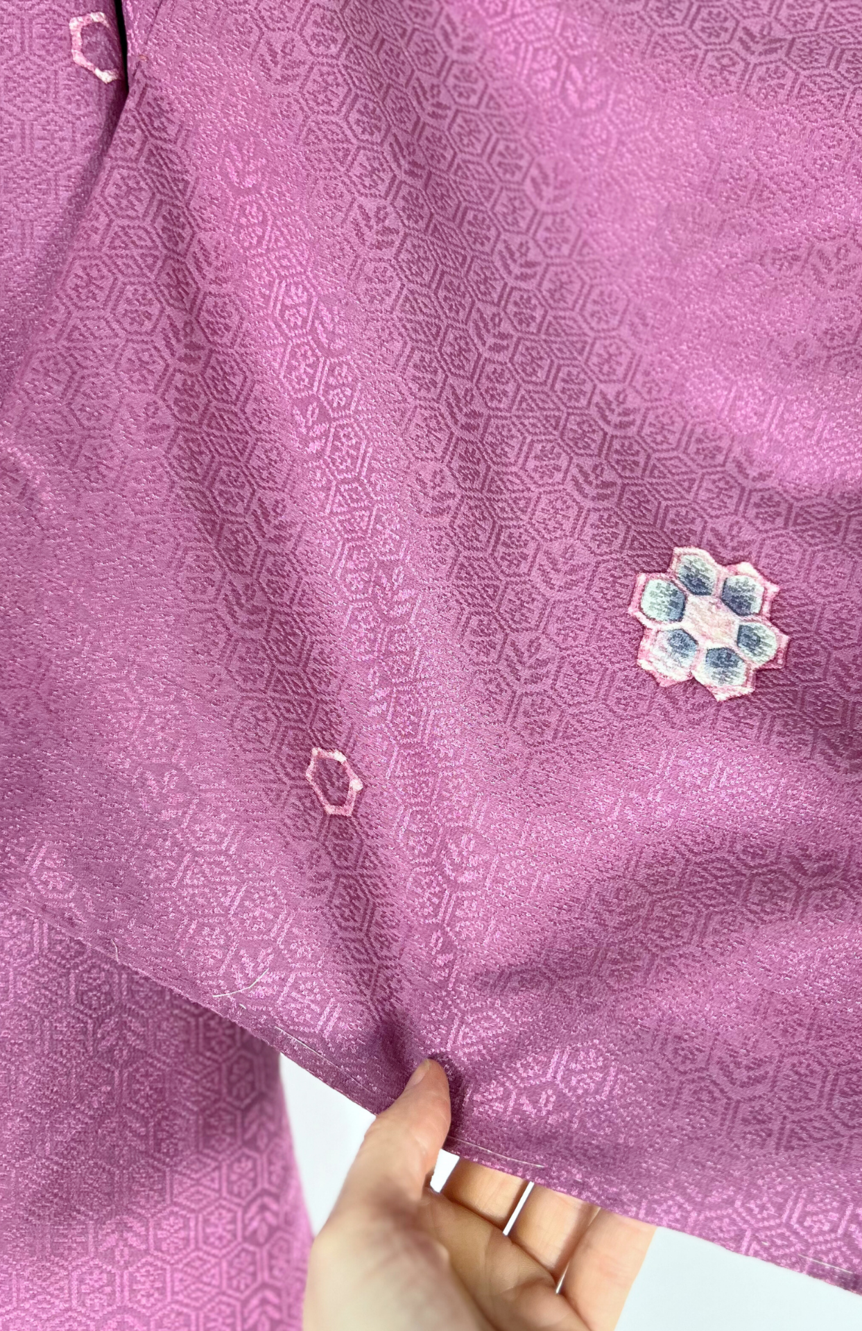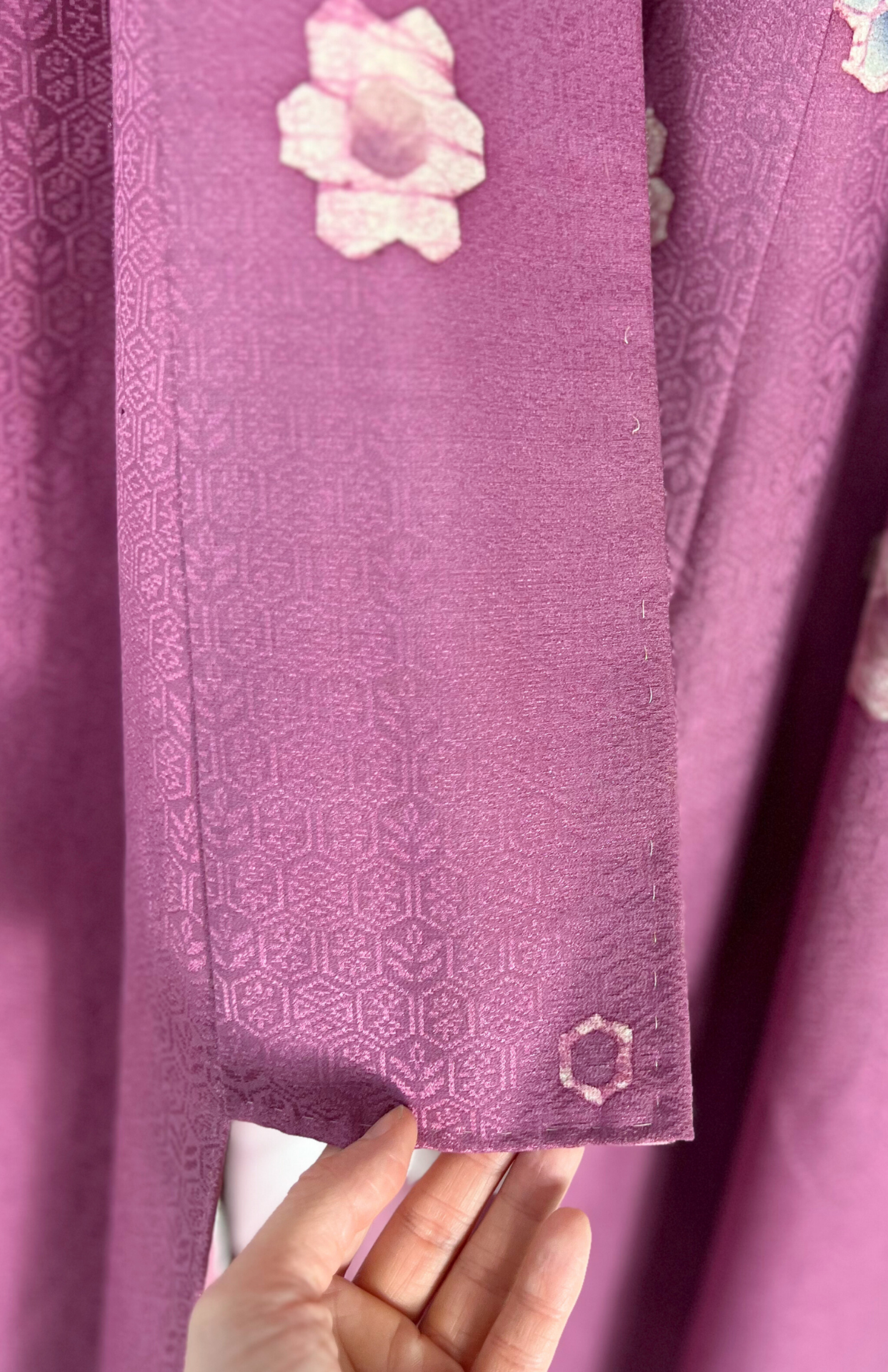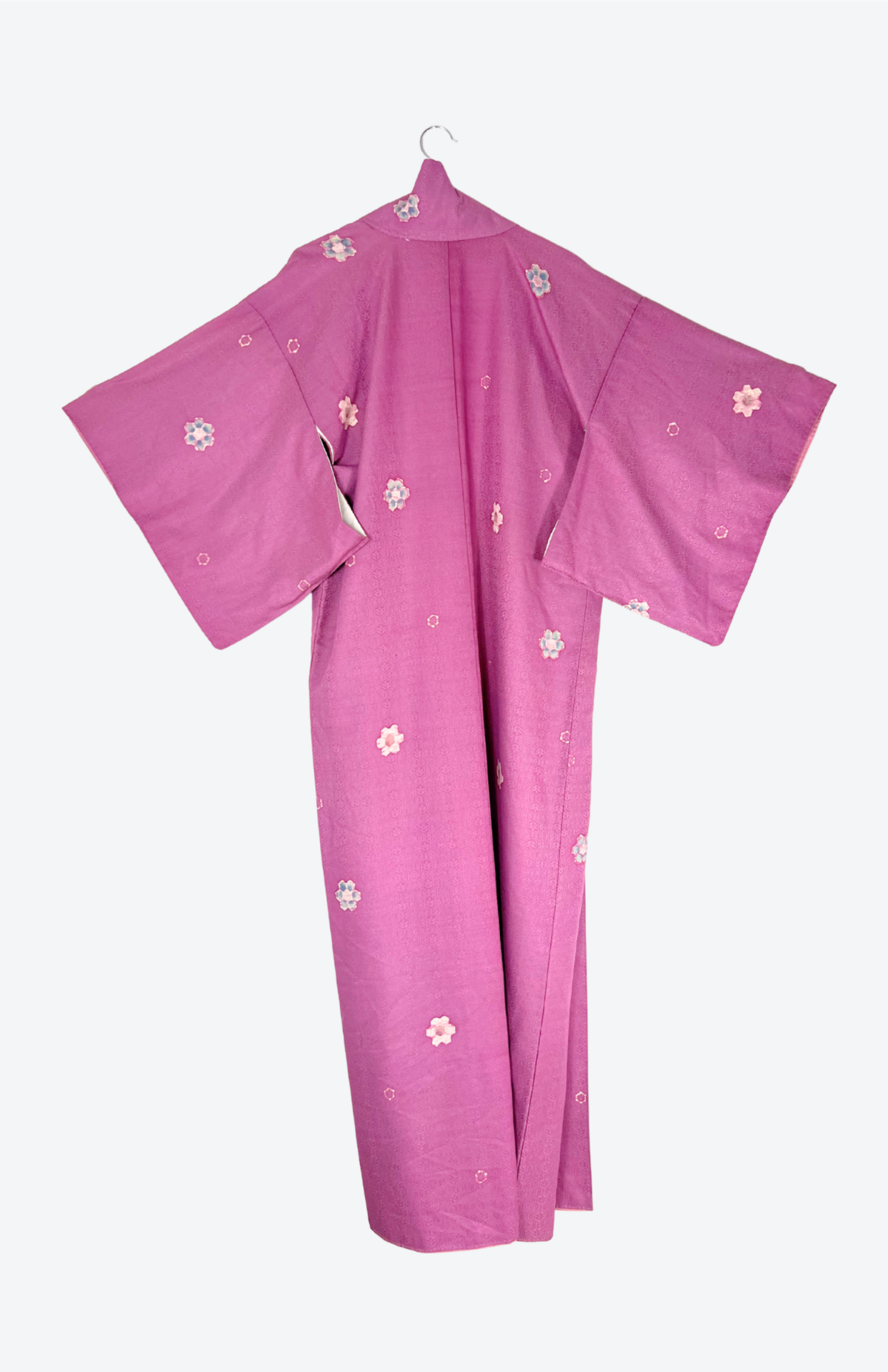 Originální vintage kousek, dovezený přímo z Japonska. Kimono lze nosit tradičně, nebo ho snadno začlenit i do současného šatníku – jako výraznou vrstvu, nebo jako výrazné večerní šaty.