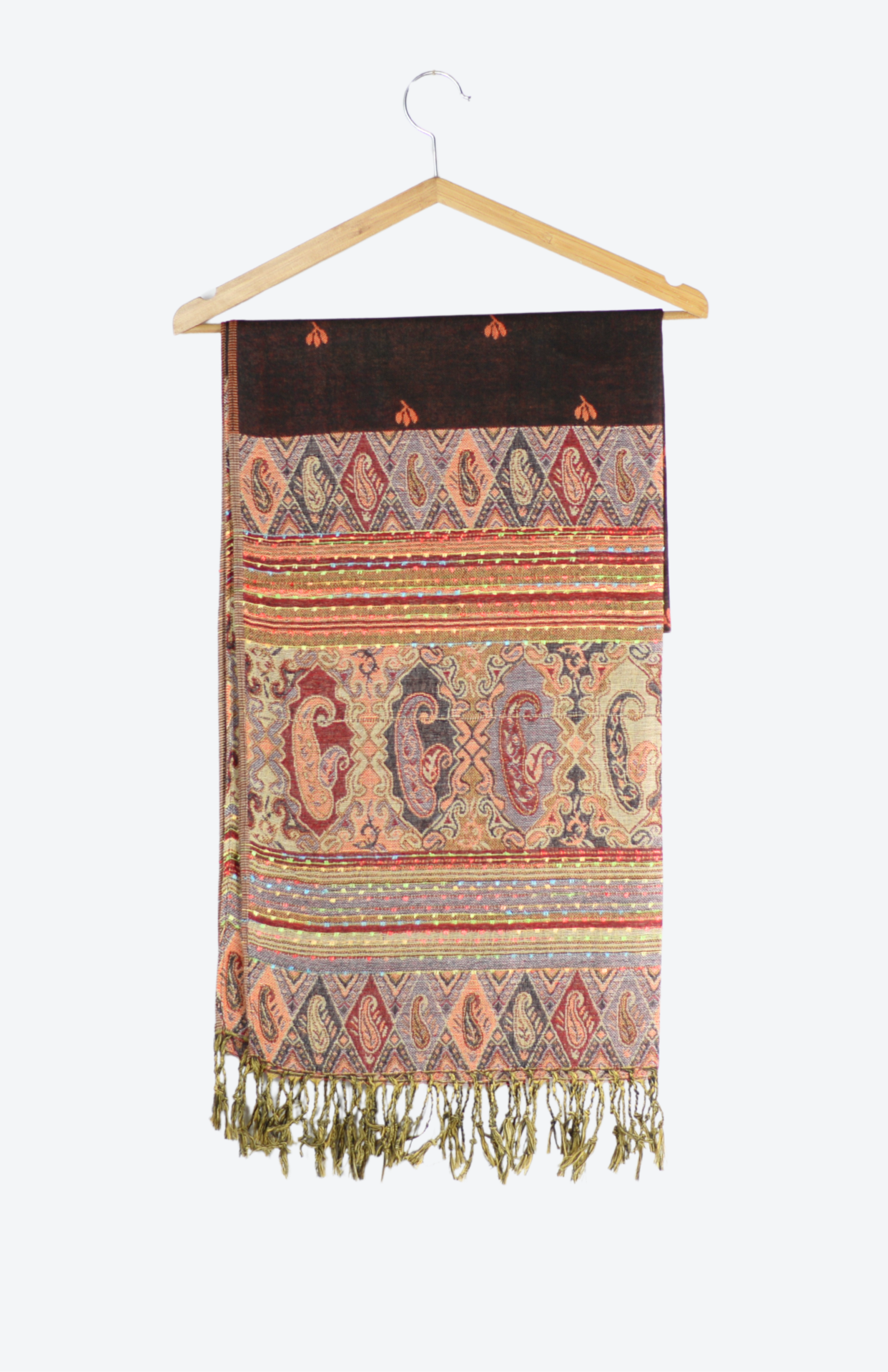 Kašmírová pašmína se vzorem a barevnou nitkou