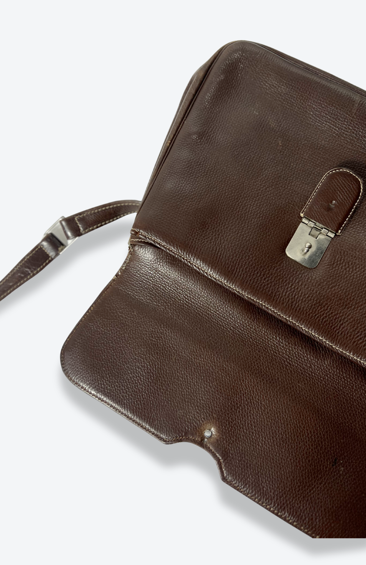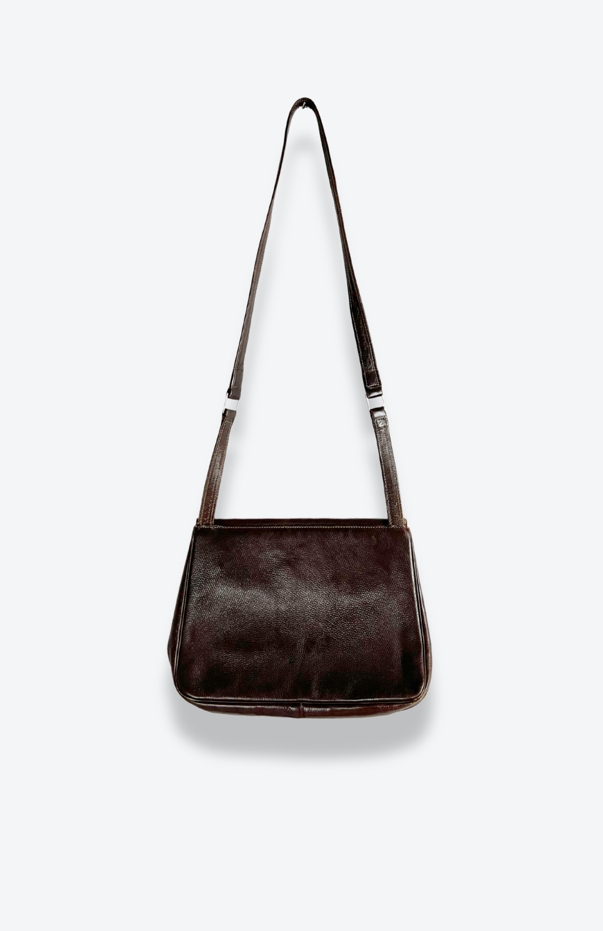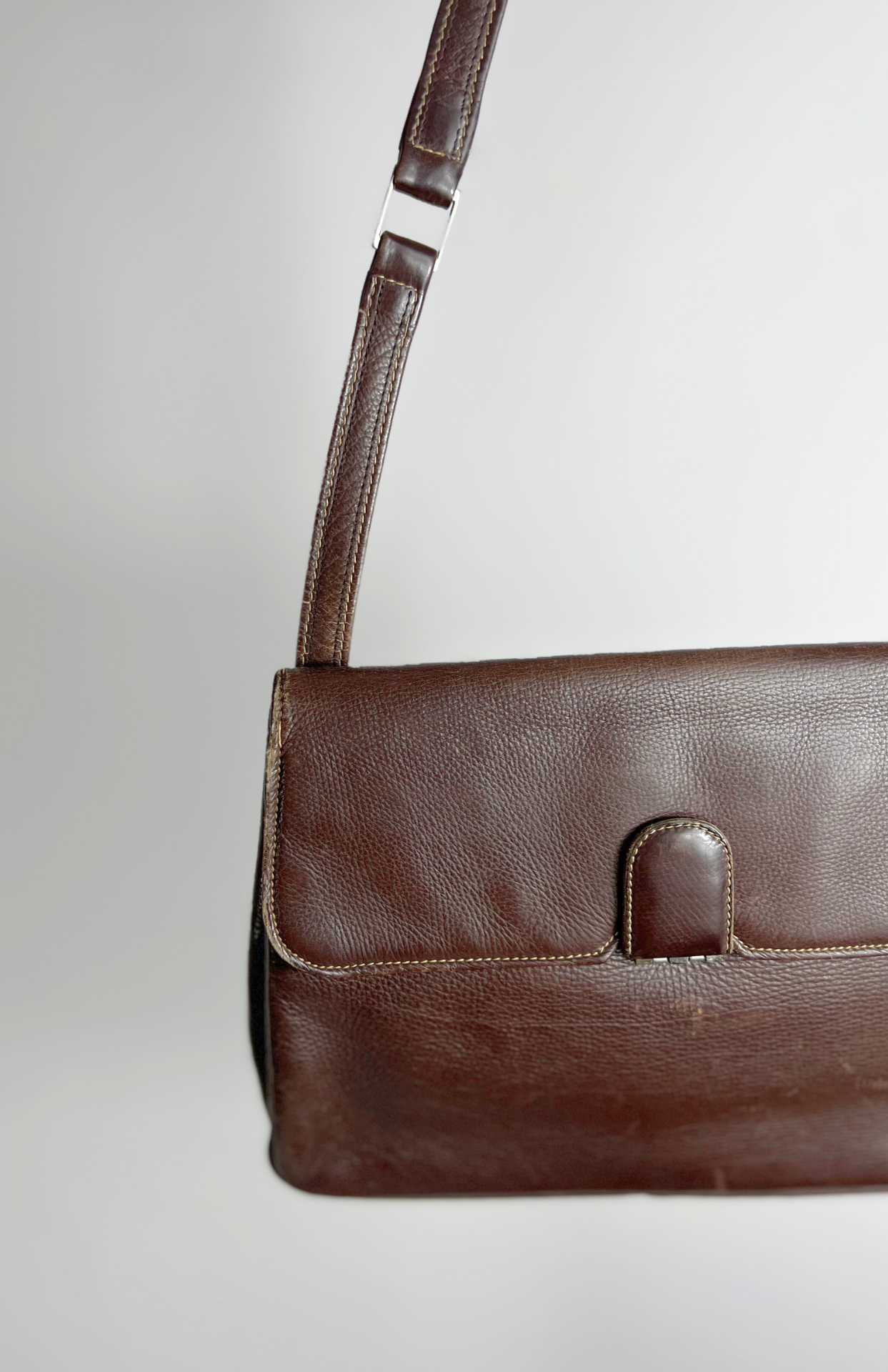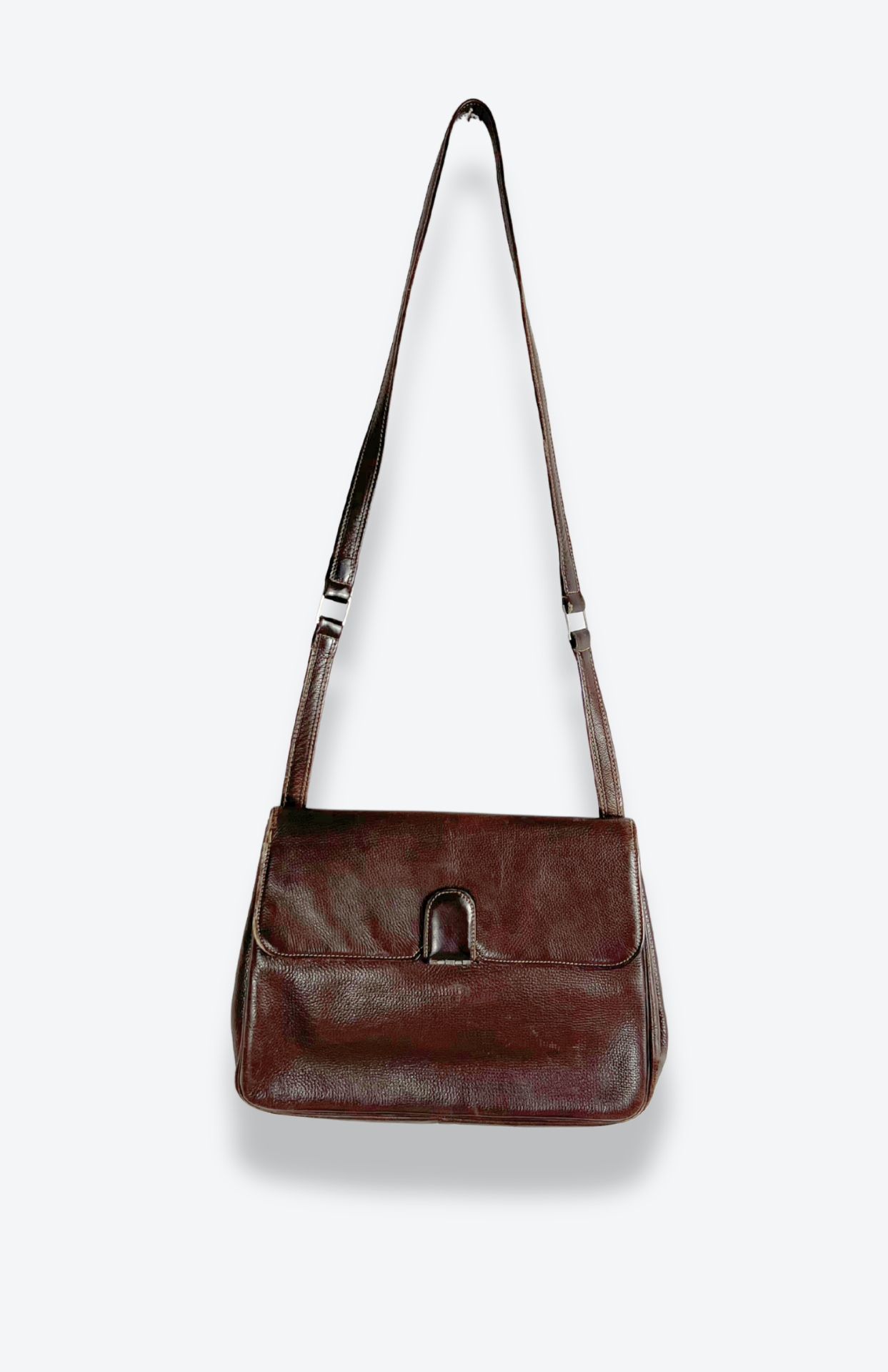 Hnědá kožená retro kabelka. Má originální zapínání, uvnitř dvě přihrádky.