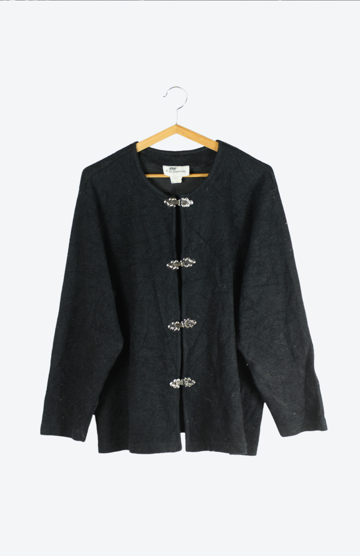 Černý norský svetr se zdobenými háčky. Má lehčí úplet.Stav: Drobné známky nošení, místy pár žmolečků.Materiál: 75% akryl, 25% polyester