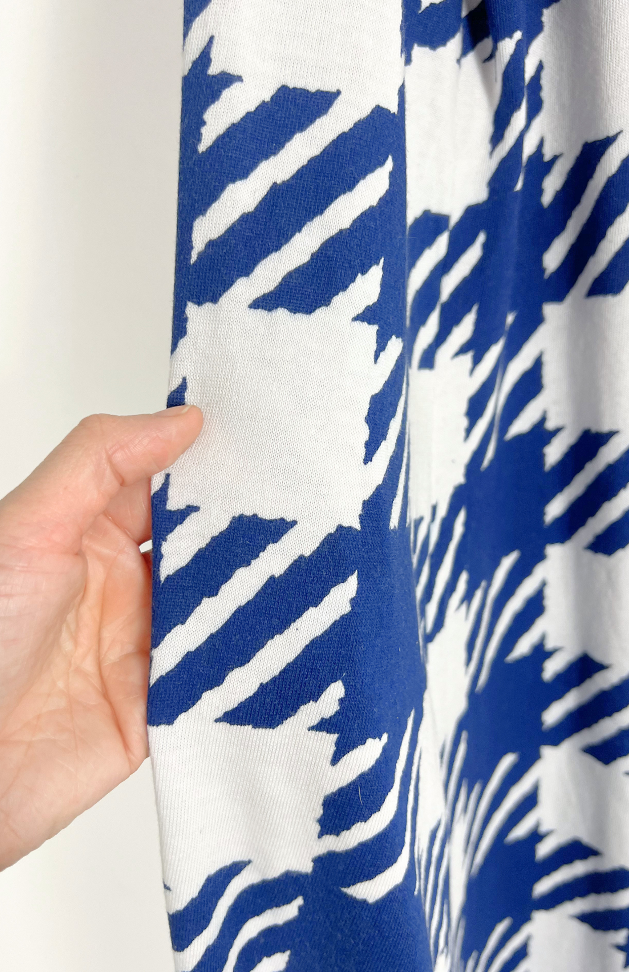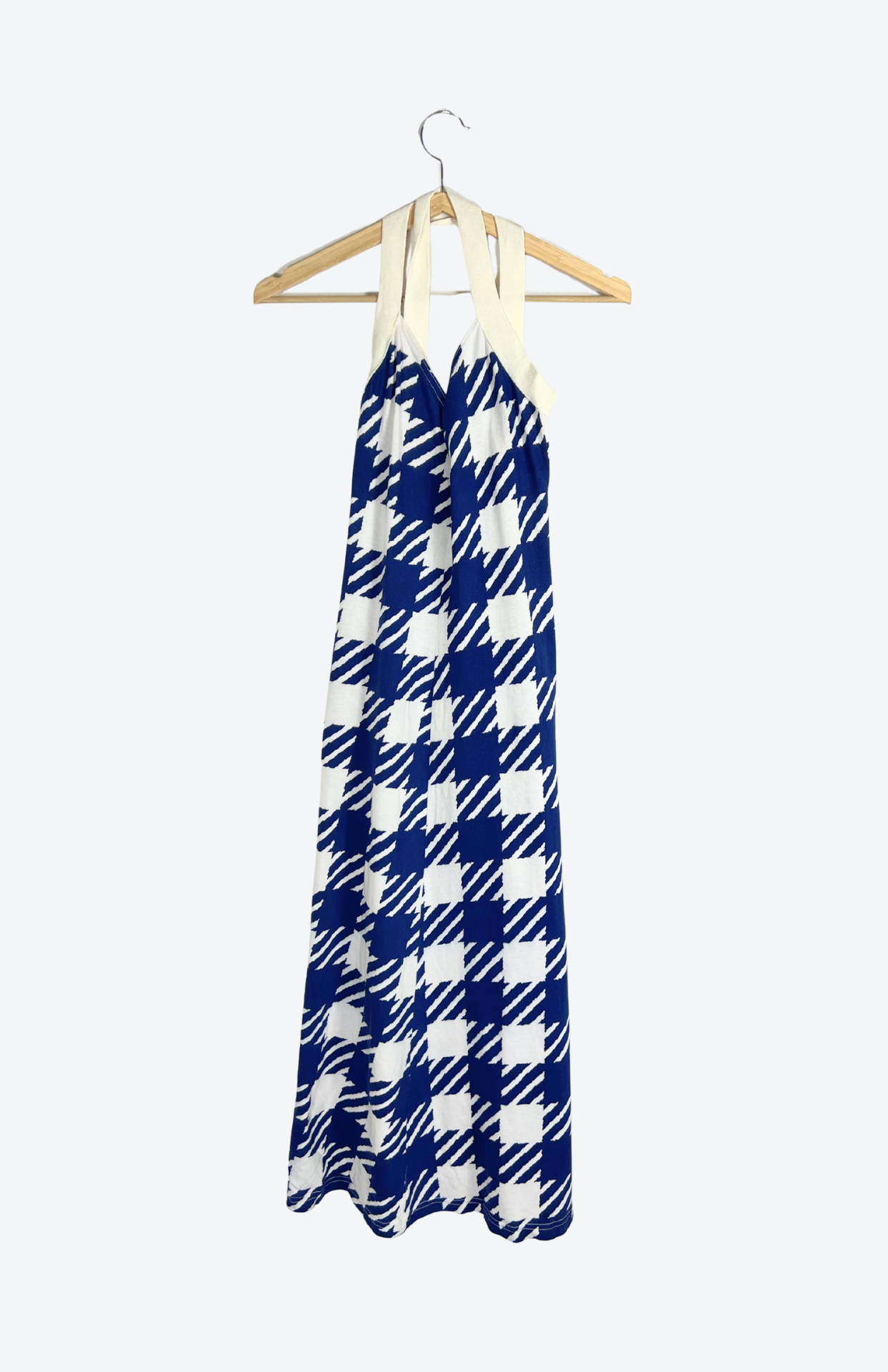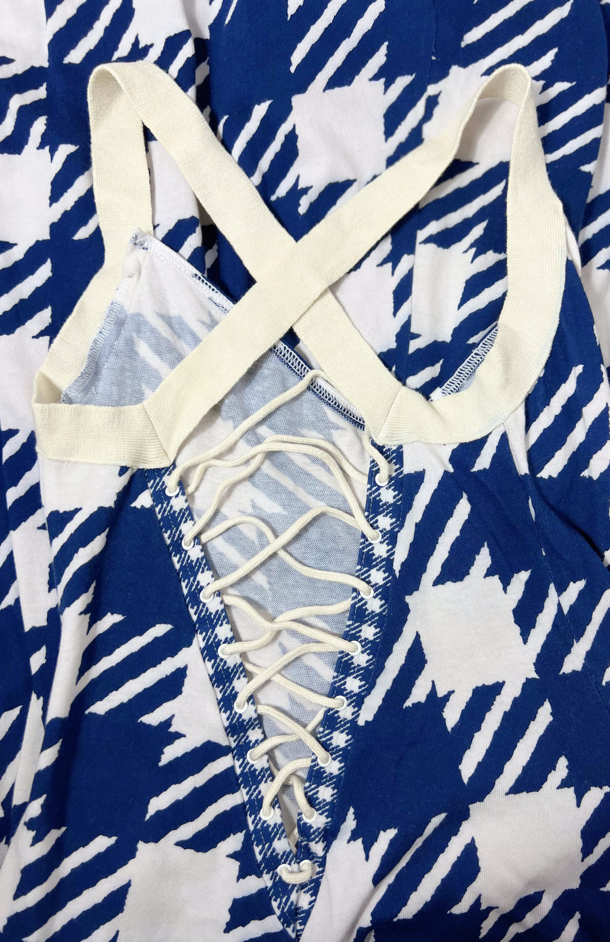 Kostkované šaty se šněrováním na zádech. Silnější, ale pružný úplet. Pěkně zpracovaný retro kousek.