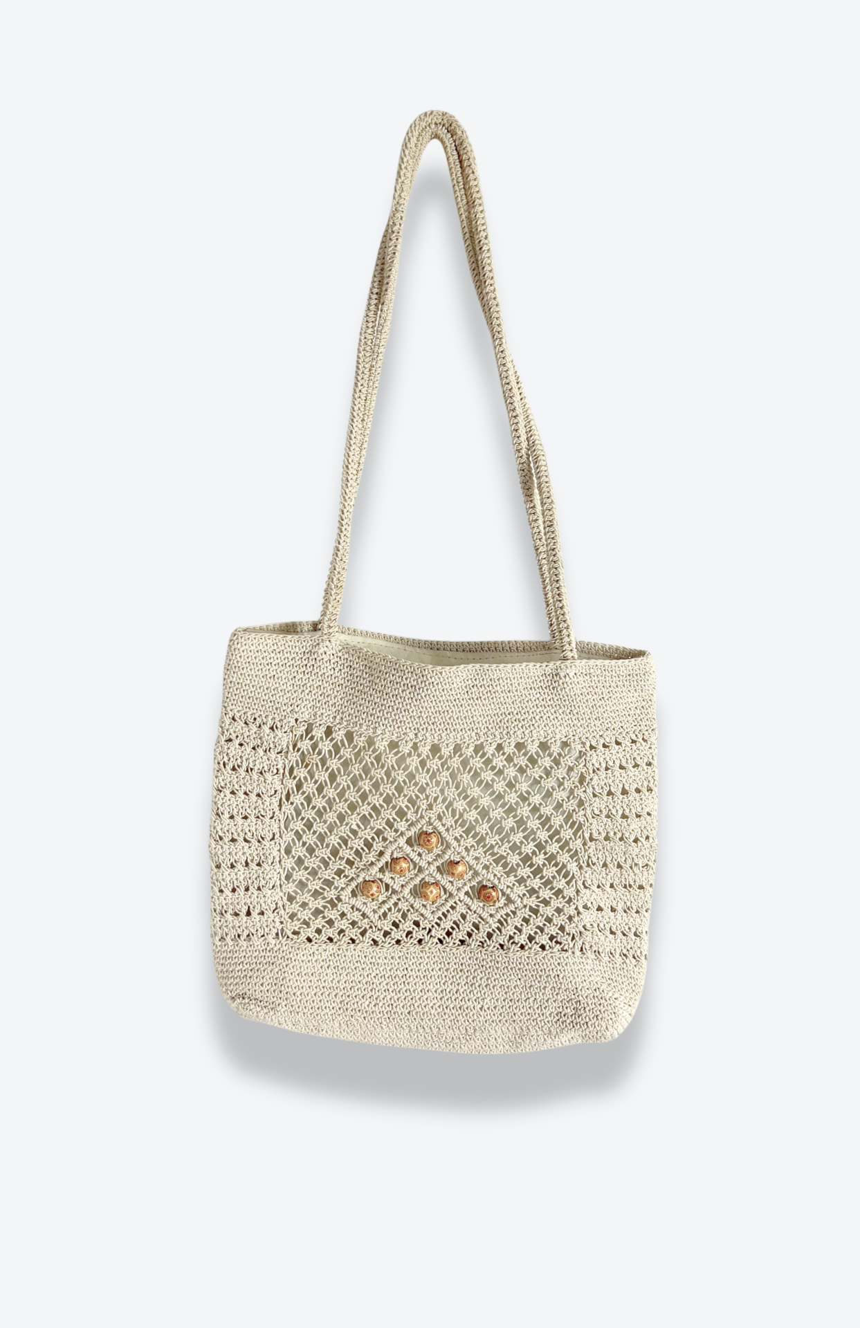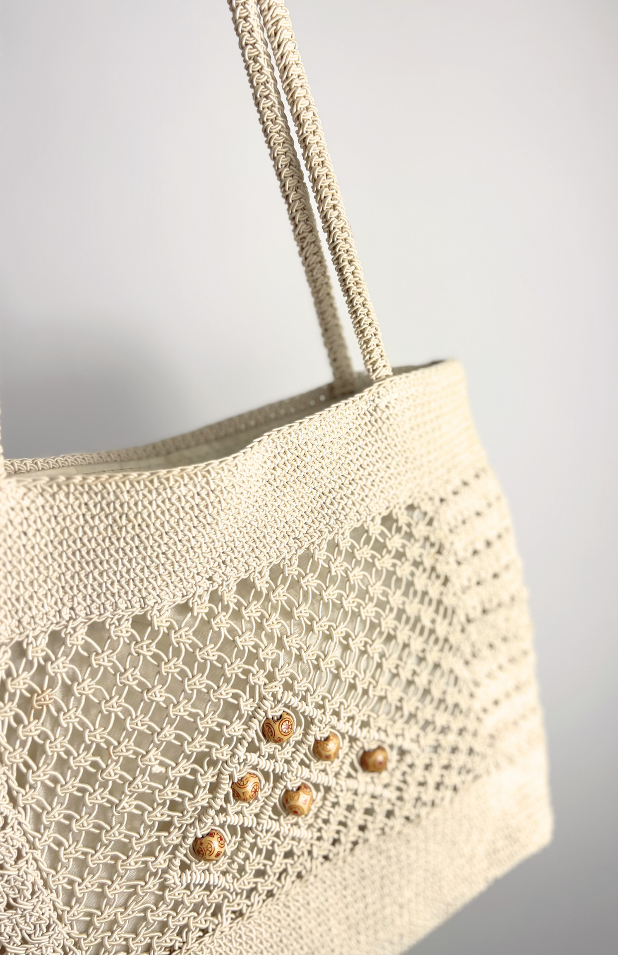 Krémová boho splétaná kabelka s korálky