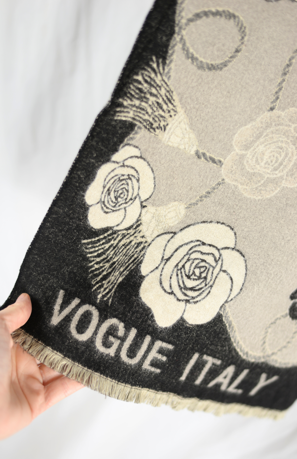 Květinová beige velká šála. Hutnější úplet, větší kousek.
