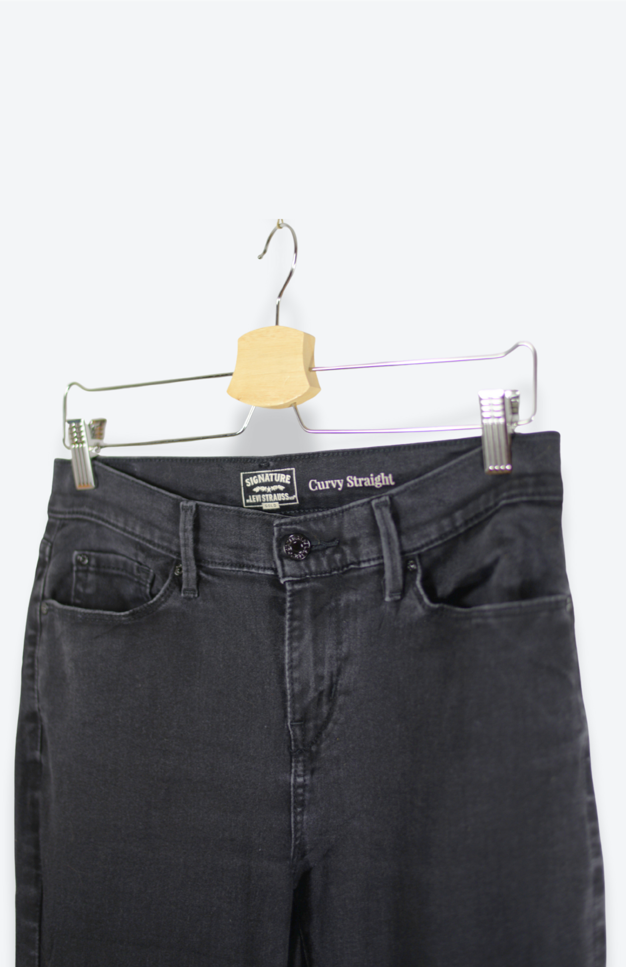 Retro Levi's džíny. Model curvy straight, mají vyšší pas, kapsy vpředu i vzadu a klasické - lehce volné nohavice. Denim je měkký, středně silný a jemně pruží. Vzadu drobný kožený patch se zachovalou patinou.