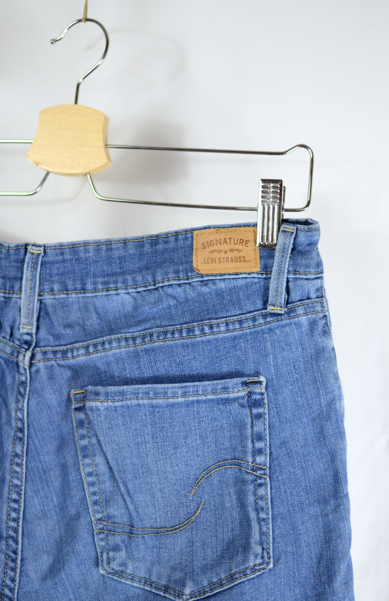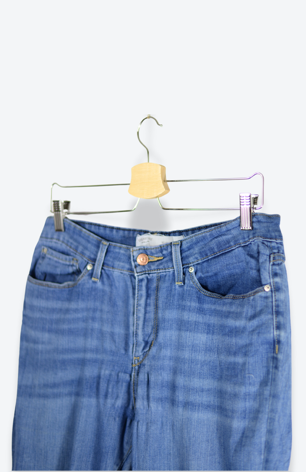 Retro Levi's džíny. Model mid rise capri. Mají lehce vyšší pas, kapsy vpředu i vzadu a klasické - lehce volné nohavice. Denim je hodně měkký, tenčí a více pruží. Vzadu kožený patch.