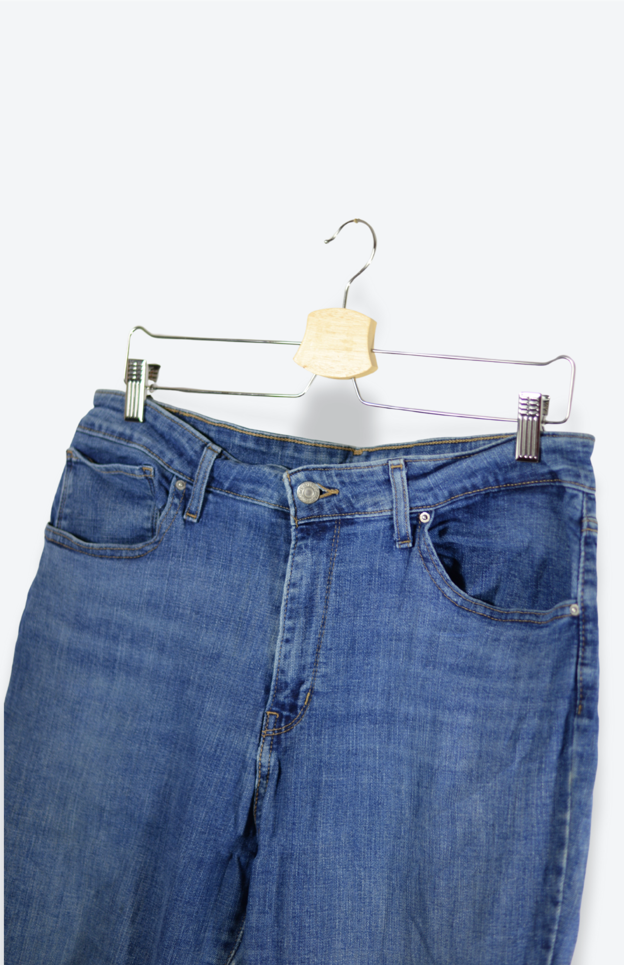 Retro Levi's džíny. Model 721 high rise skinny, mají vyšší pas, kapsy vpředu i vzadu a upnutější nohavice. Denim je měkký, středně silný a jemně pruží. Vzadu klasický červený label a kožený patch se zachovalou patinou.