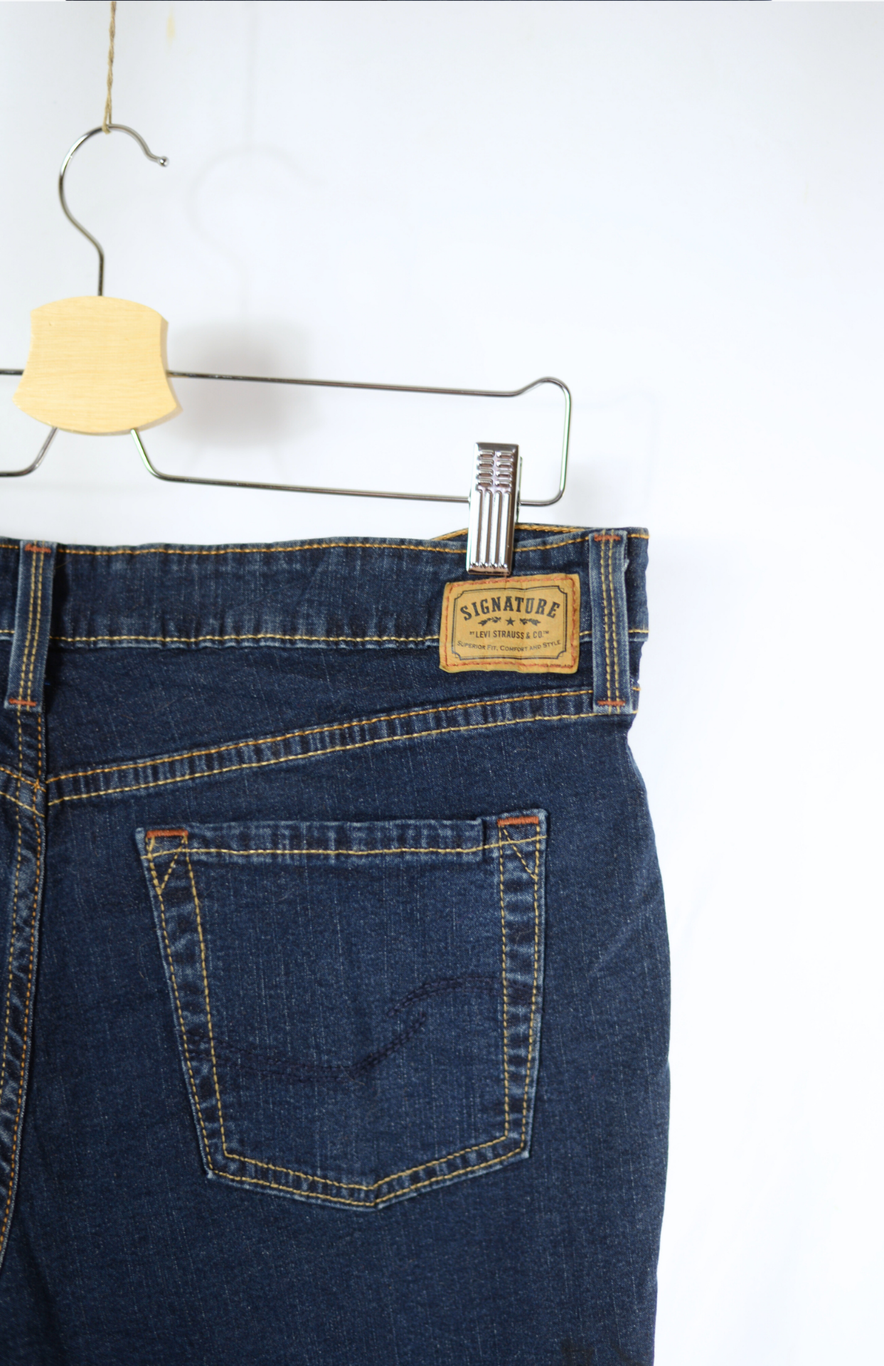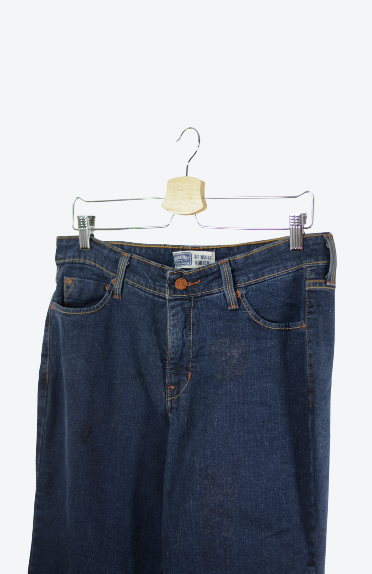 Retro Levi's džíny. Model – at wais bootcut. mají vysoký pas, kapsy vpředu i vzadu a volnější nohavice. Denim je středně silný a jemně pruží. Vzadu kožený patch se zachovalou patinou.
