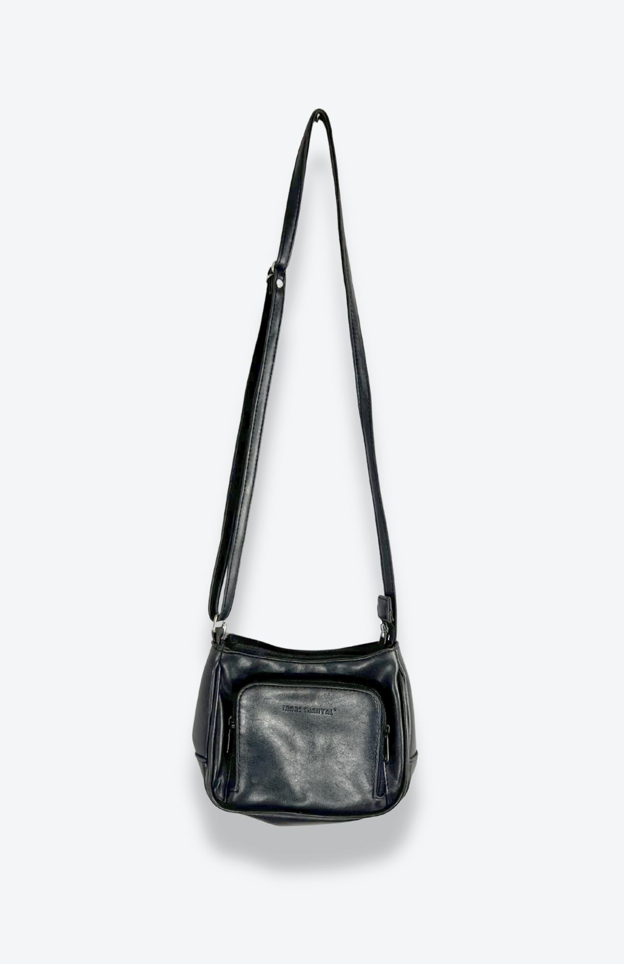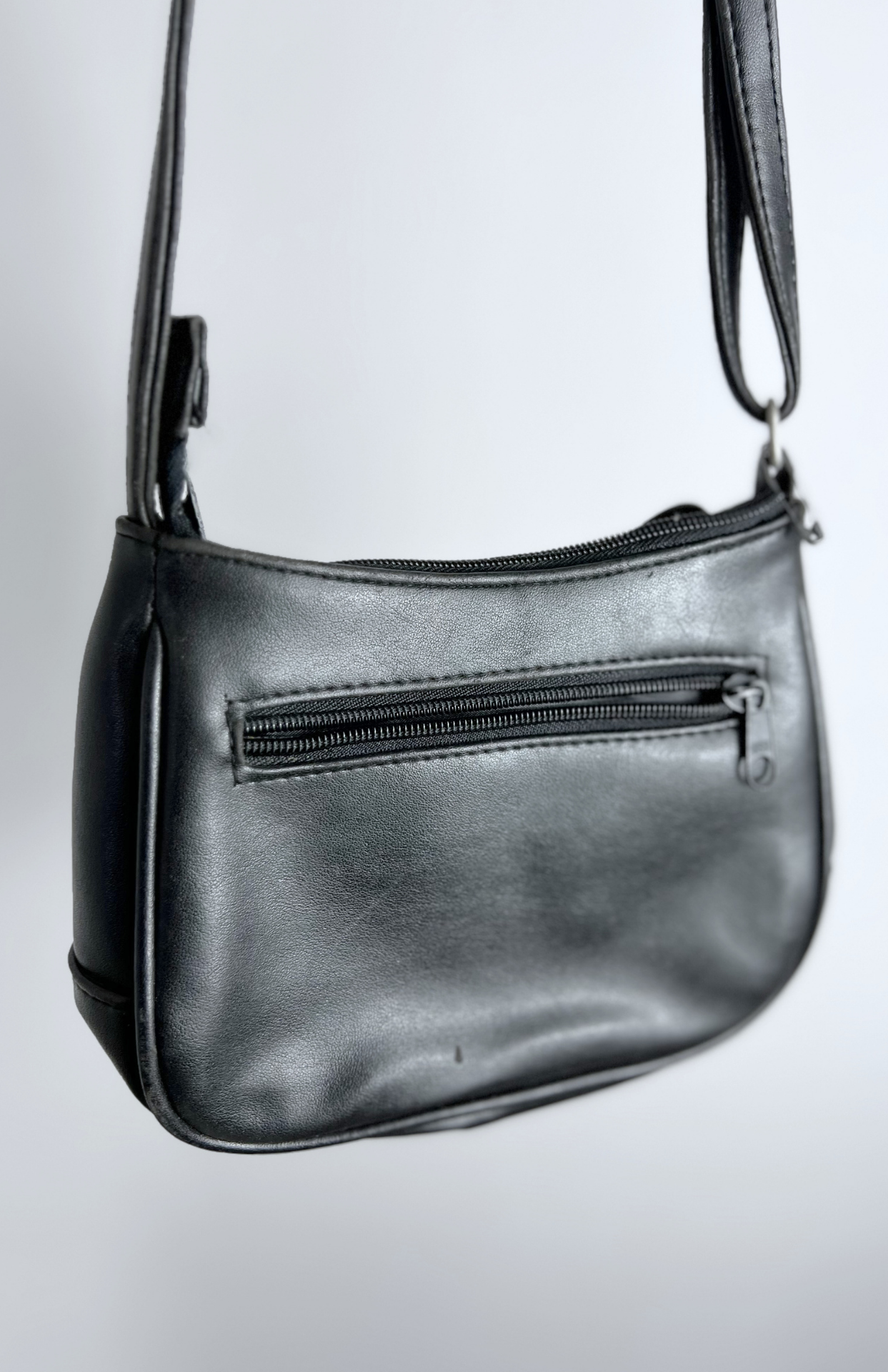 Malá černá retro kožená kabelka. Minimal kousek s nastavitelným řemínkem popruhu.