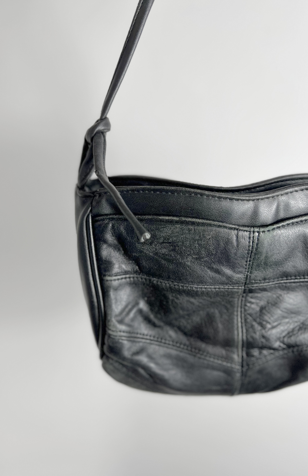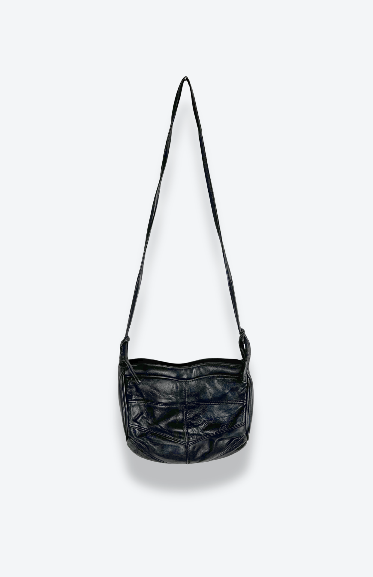 Malá retro kožená černá kabelka. Minimal kousek s dlouhým popruhem a zapínáním na zip.