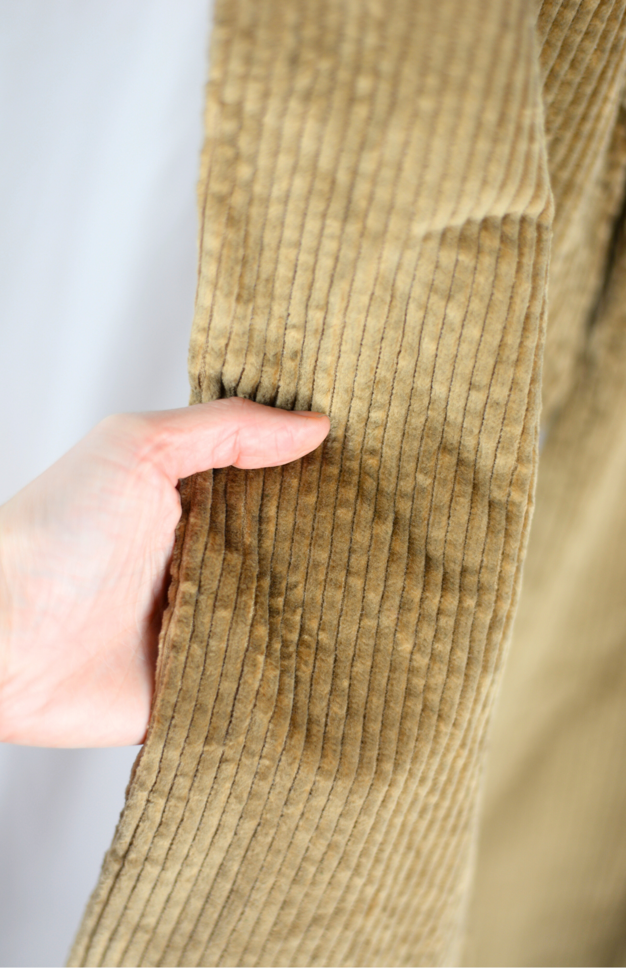 Silné kalhoty z hrubého manšestru. Mají širší nohavice a kapsy vpředu i vzadu.
