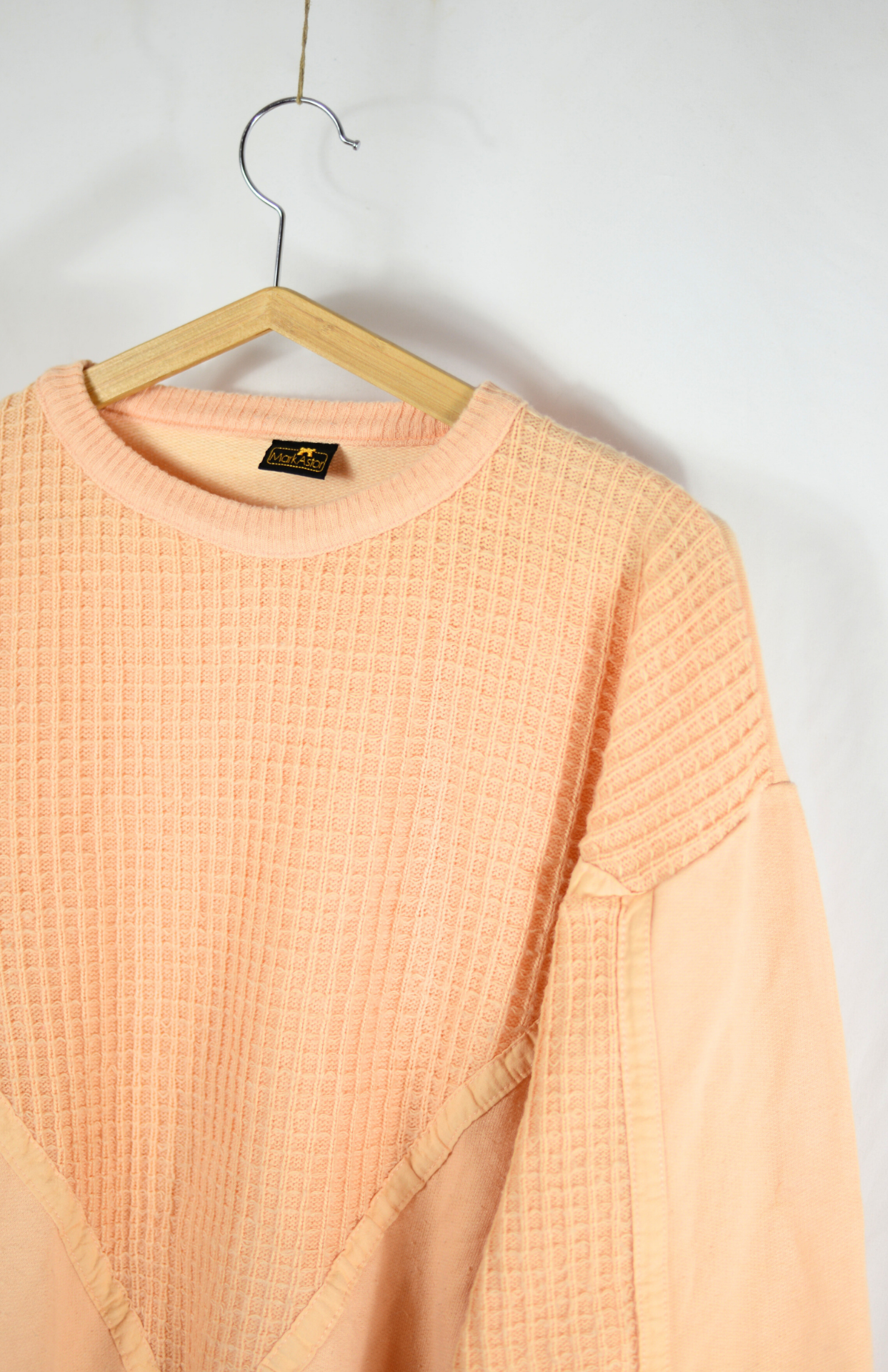 Meruňkový retro svetr. Má nabíraný rukáv a strukturu na středu.