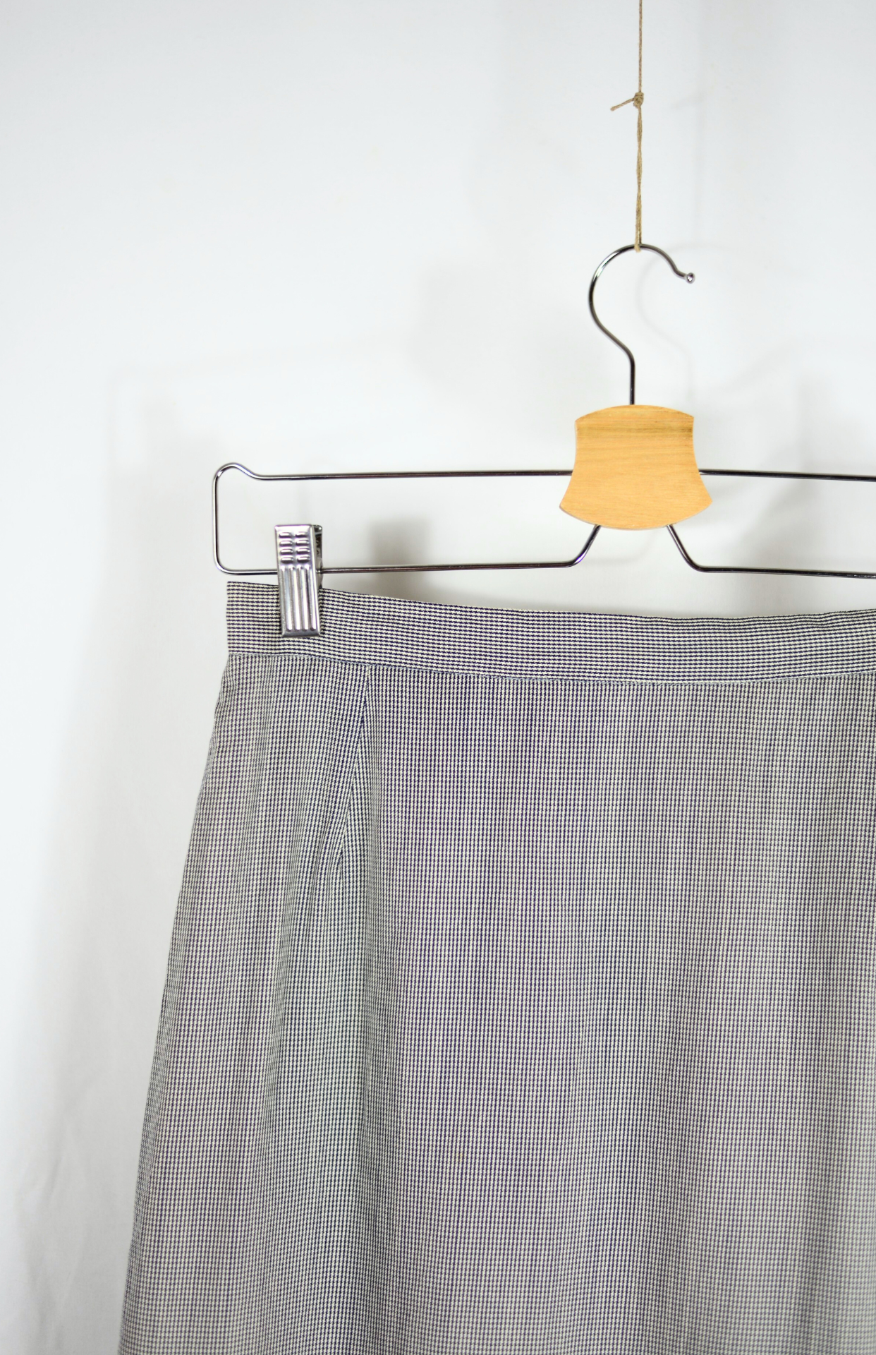 Sukně pod kolena s drobnou pepitovou kostkou. Zapíná se vzadu na knoflíček a zip. Elegantní kousek.Stav: Vintage kousek ve skvělém stavu, bez vad.