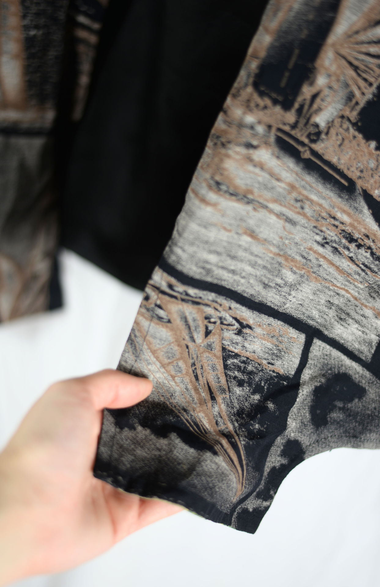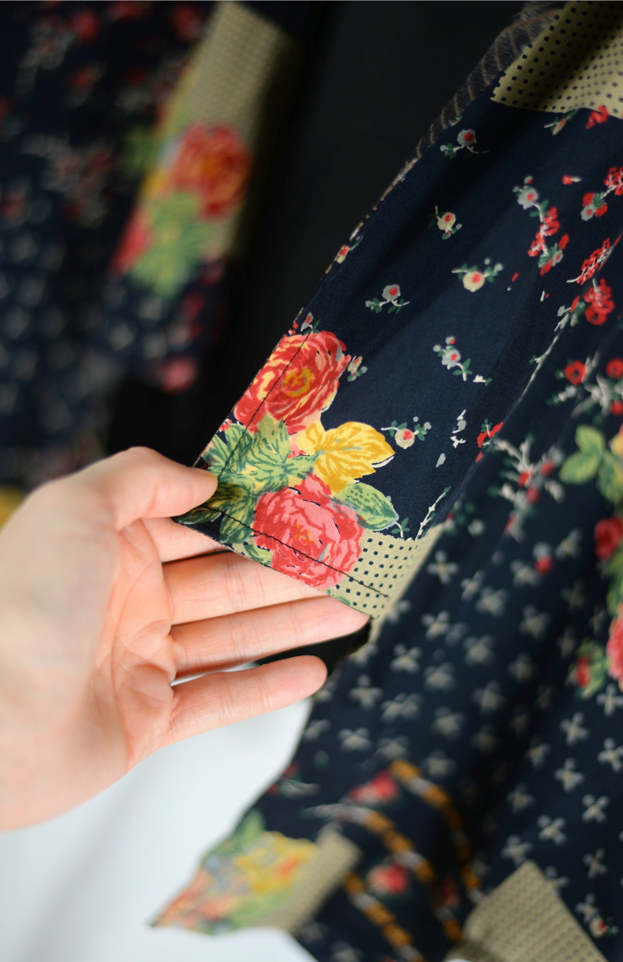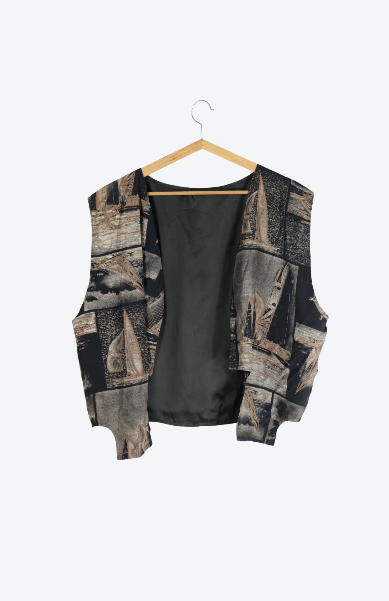 Vesta s funky vzorem. Z jedné strany květinový barvený patchwork, z druhé strany abstrakntí vzor v neutrálnějších barvách. Originální retro kousek.