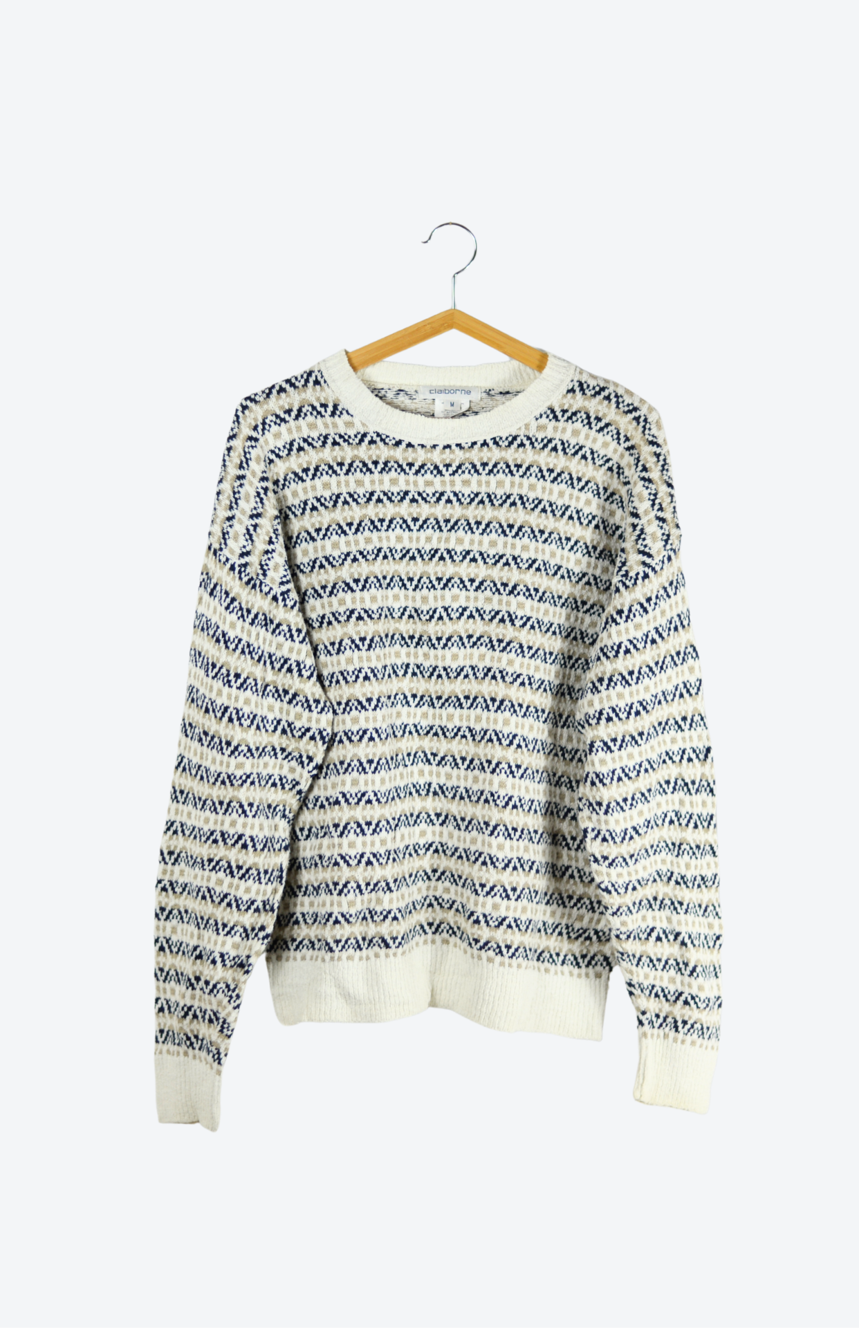 Vinatge svetr s funky drobným vzorem. Má lehce nabíraný rukáv a středně silný úplet. Originální a pěkně zpracovaný. Unisex střih.