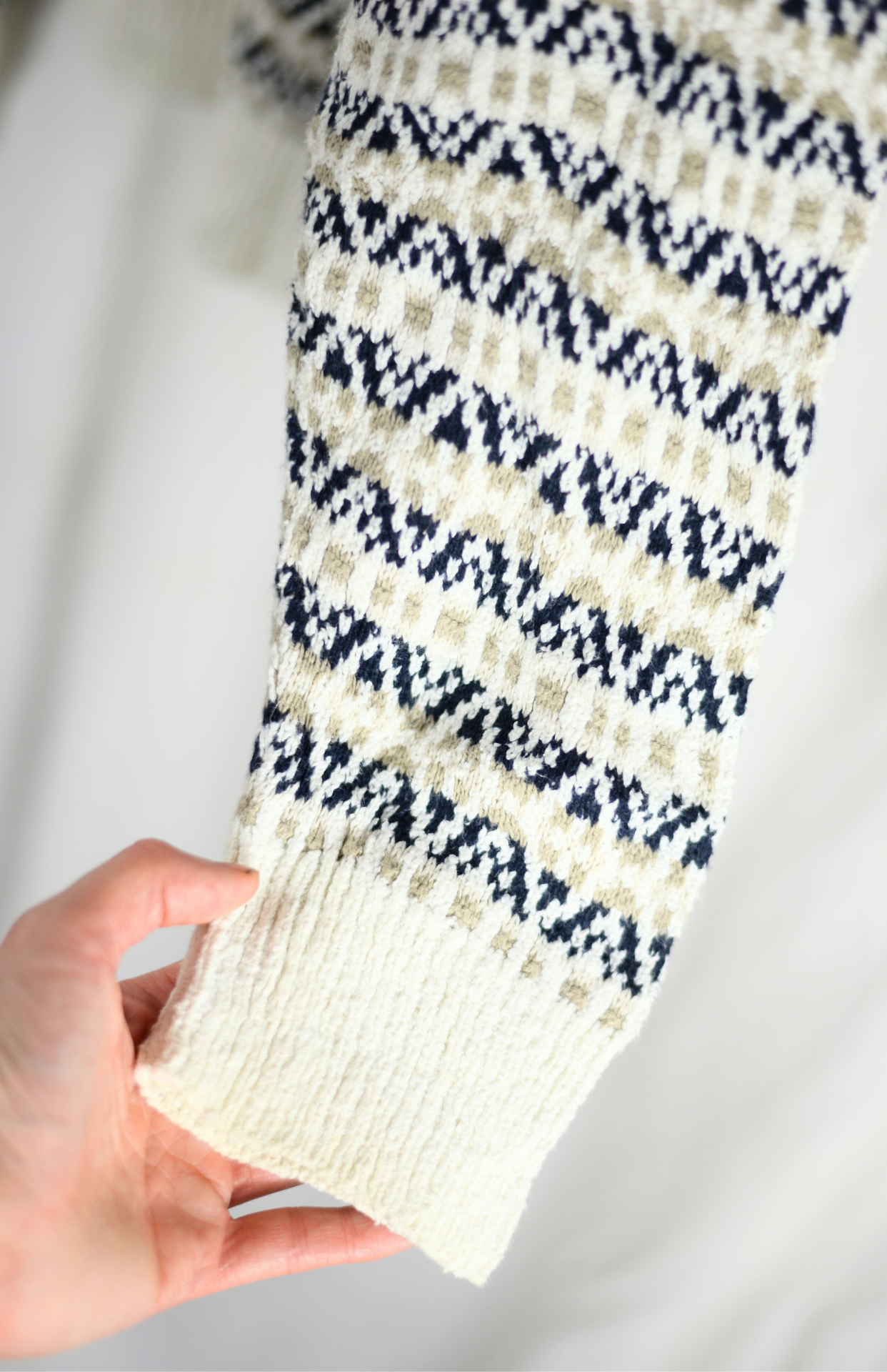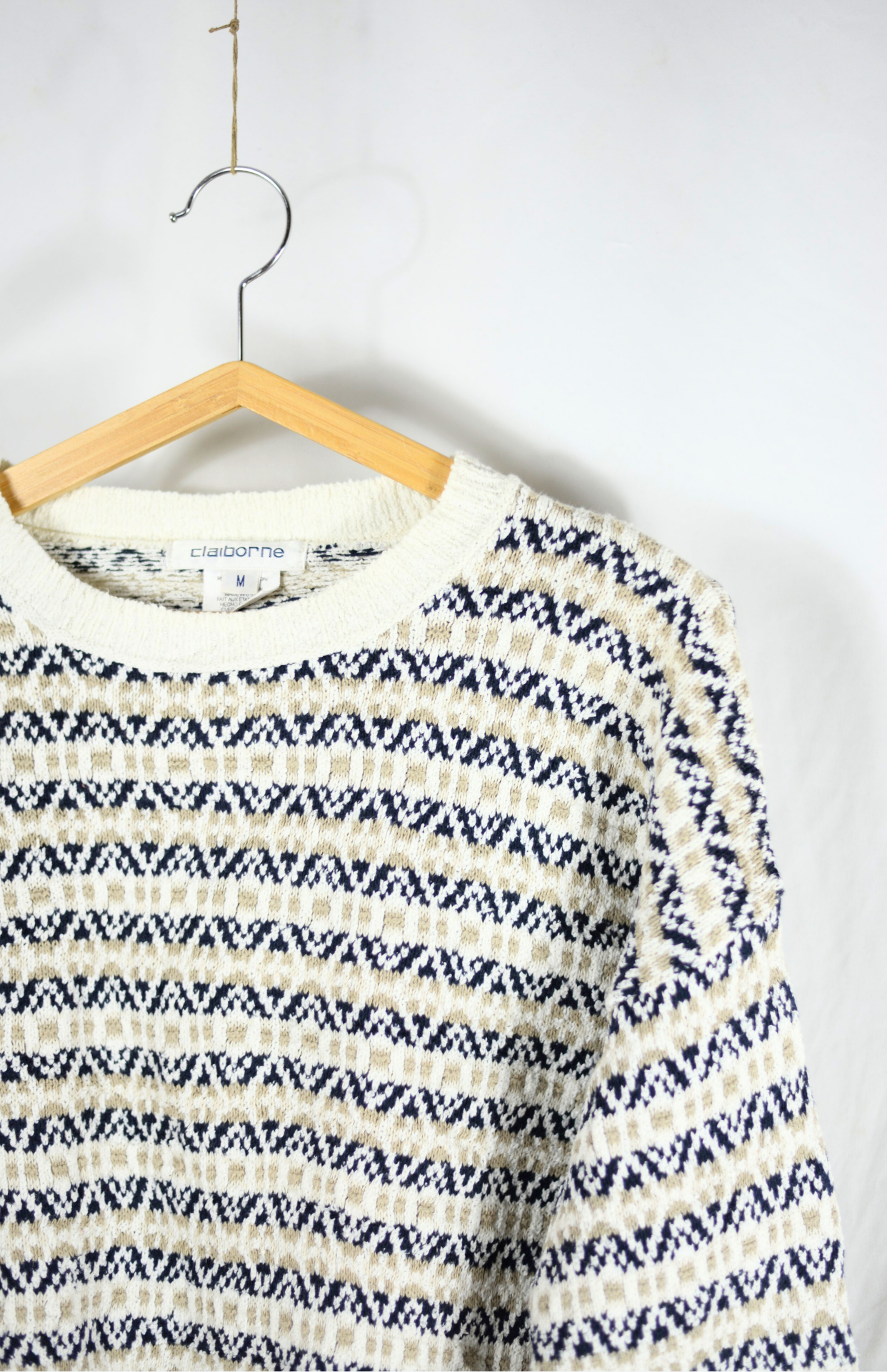 Retro bílý bavlněný svetr s drobným vzorem M/L
