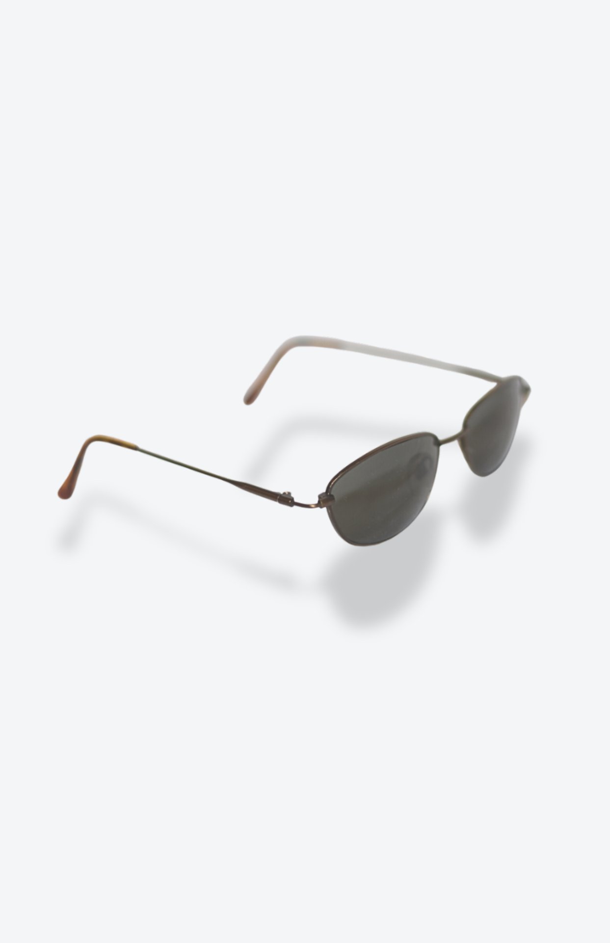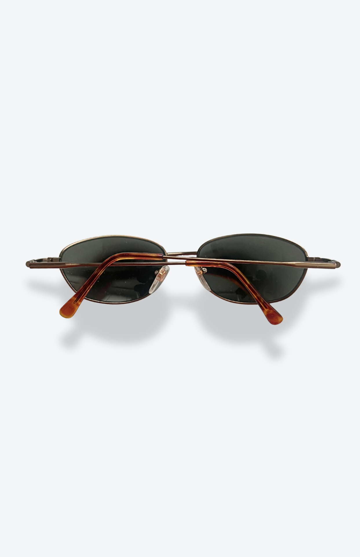 Retro brýle s tenkými měděnými obroučky. Mají skla s jemným nádechem do zelené.Stav: Brýle mají drobné škrtnutí na skle.
