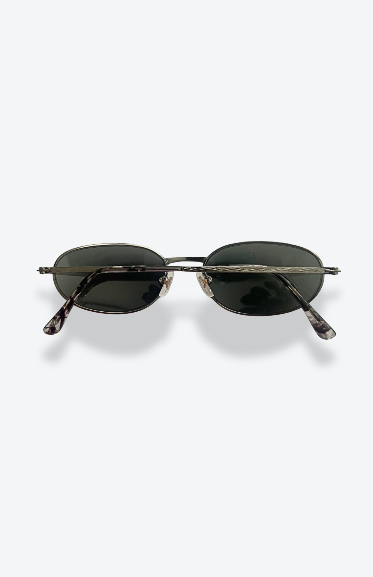 Retro brýle s tenkými kovovými obroučky. Mají nožičky s jemným gravírováním a želvovinové koncovky. Skla lehce do zelena. Stav: Brýle mají na jednom sklu vlasové škrábance.