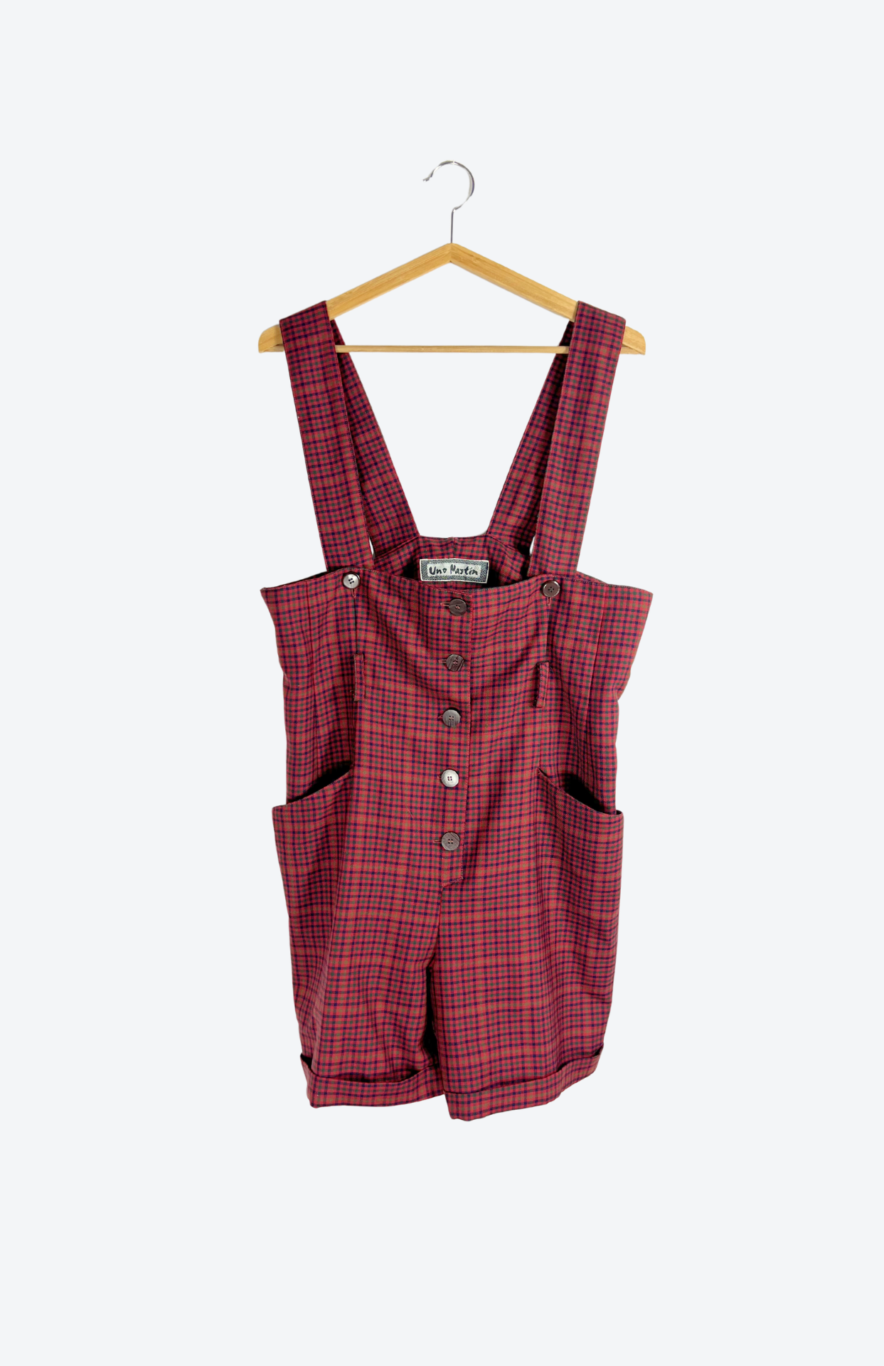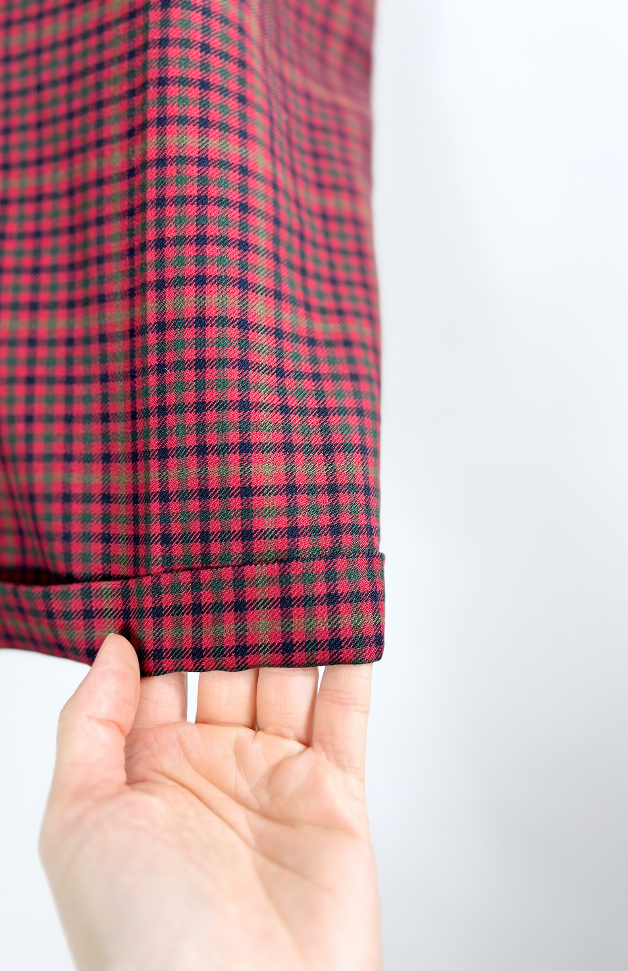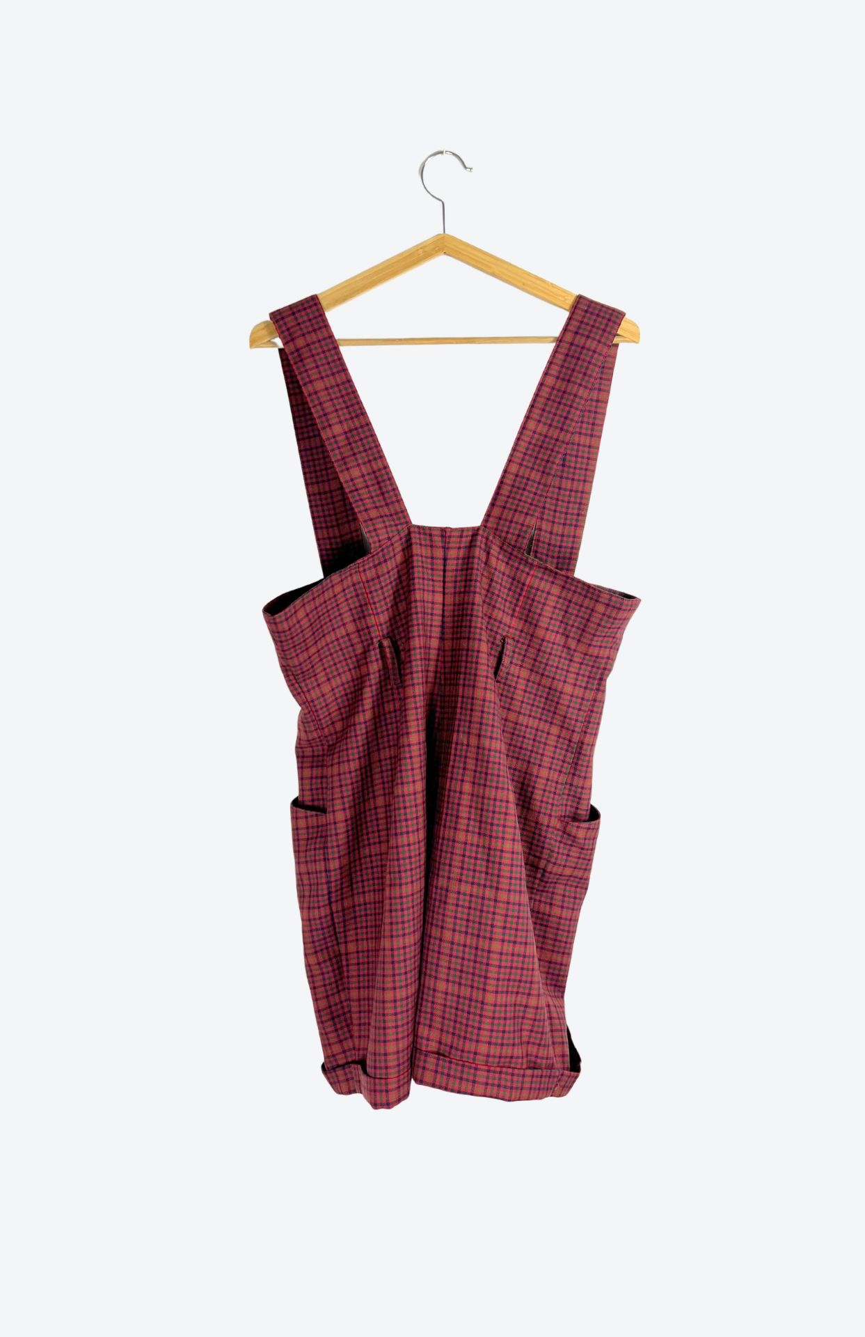 Retro burgundy vlněné laclové šortky s barevnou kostkou S/M
