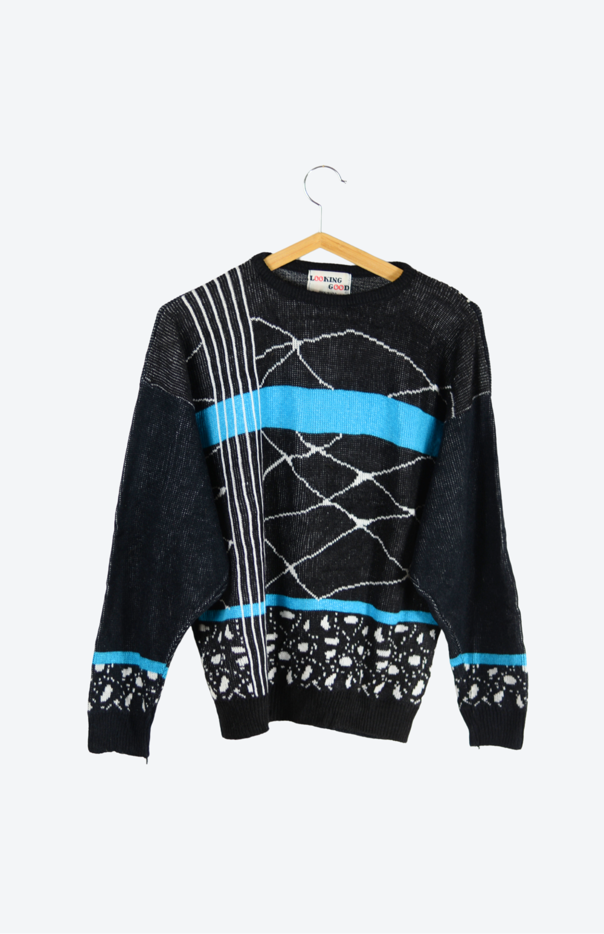 Vinatge svetr s funky vlnovkovým vzorem. Má středně silný, nemačkavý úplet. Originální a pěkně zpracovaný.Stav: Vintage kousek ve skvělém stavu, bez vad.Materiál: bez cedulky