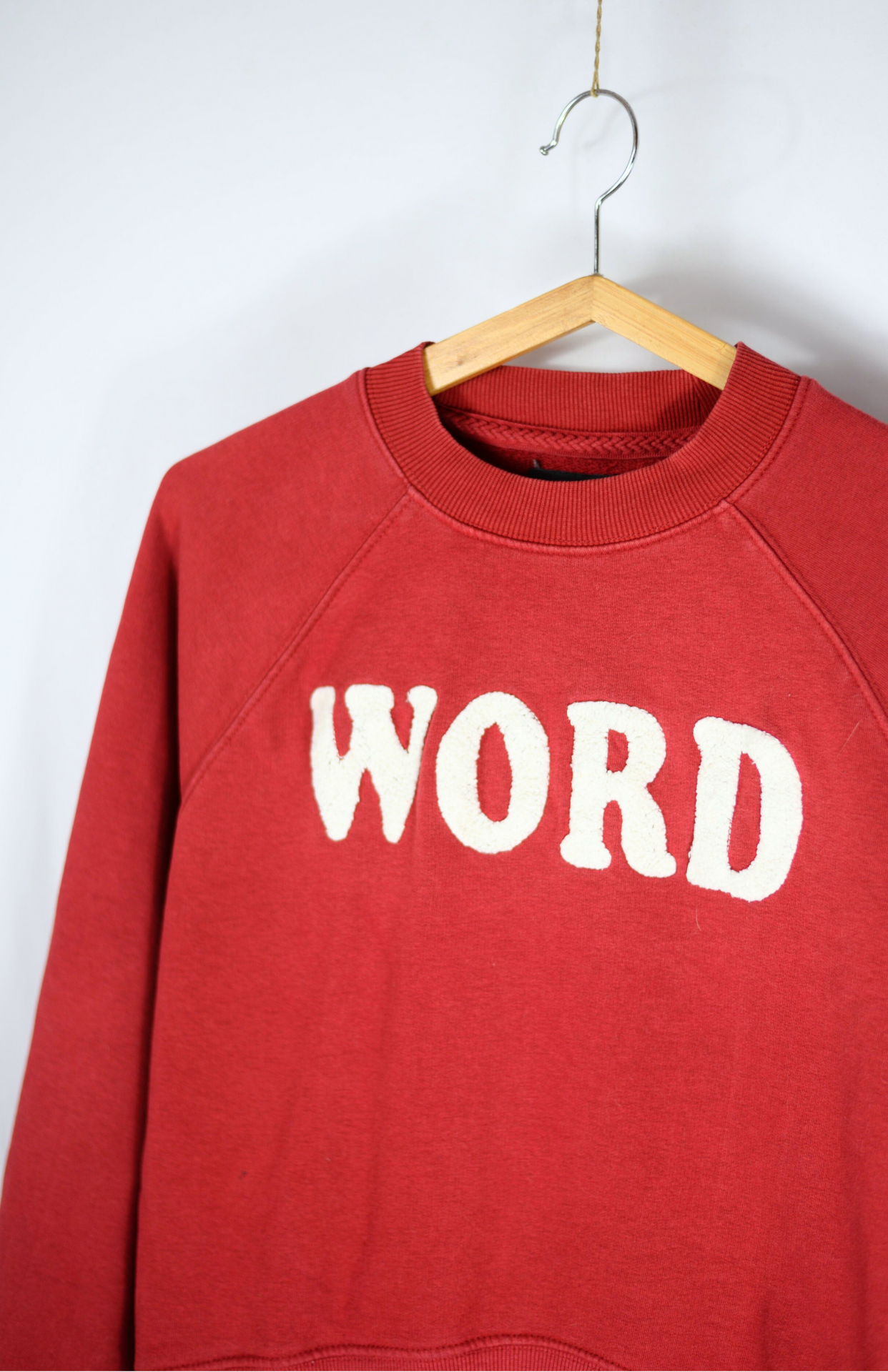 Retro červená bavlněná mikina s nápisem se strukturou. Má kratší střih.Stav: Skvělý stav, bez vad.