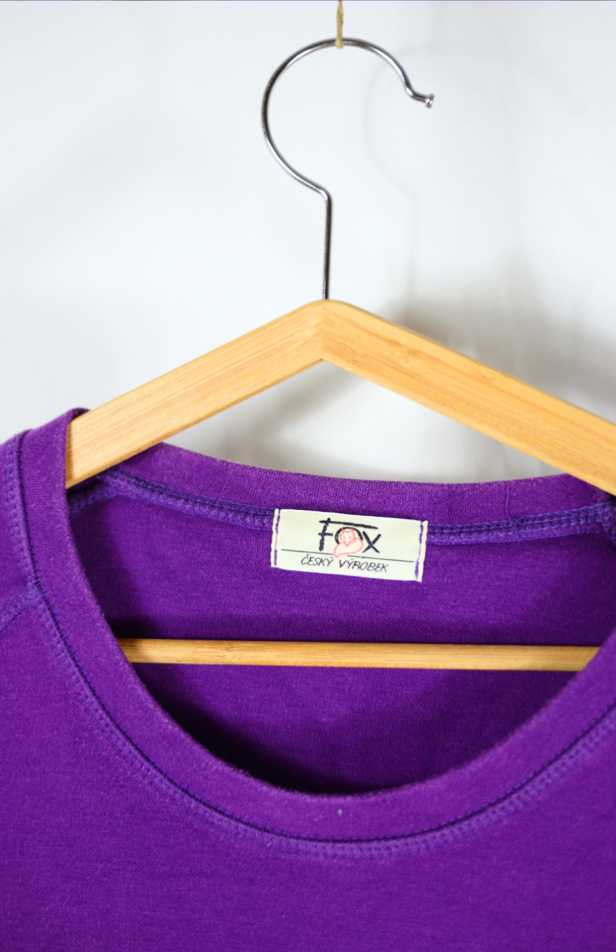 Retro bavlněná mikina v sytě fialové. Má volnější střih.