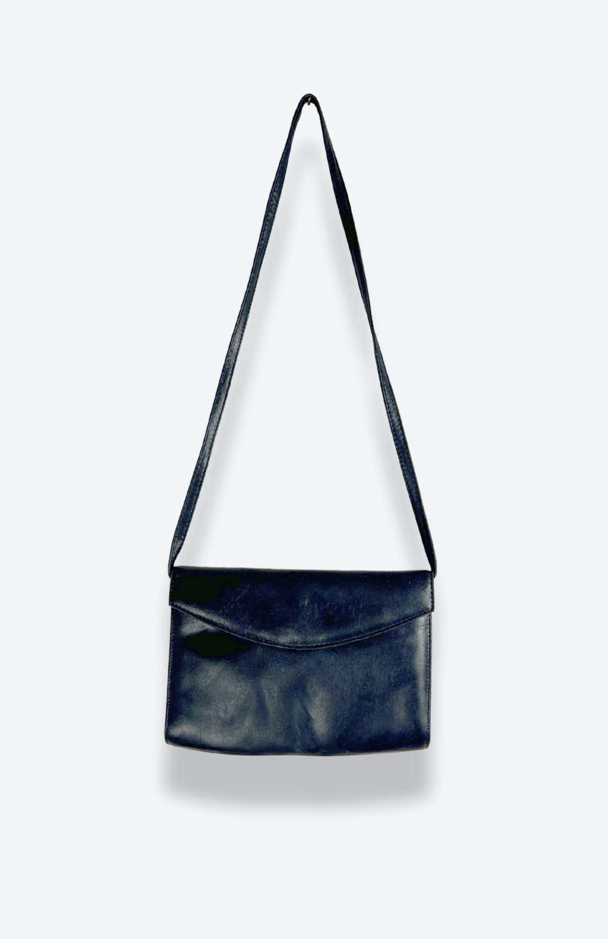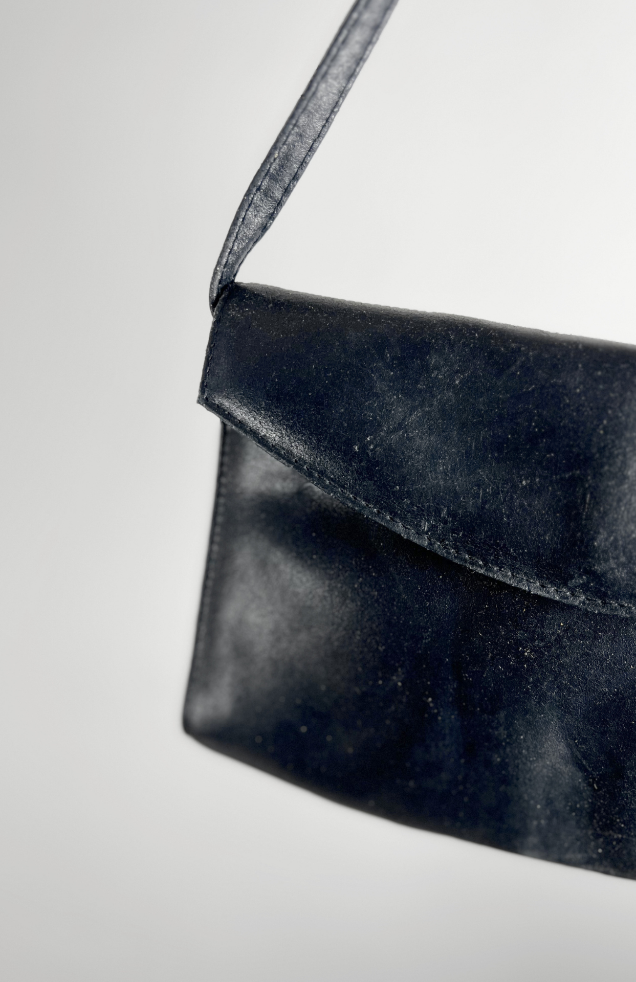 Retro kožená tmavě modrá kabelka. Má zapínání na patent a podšívku z broušené kůže.