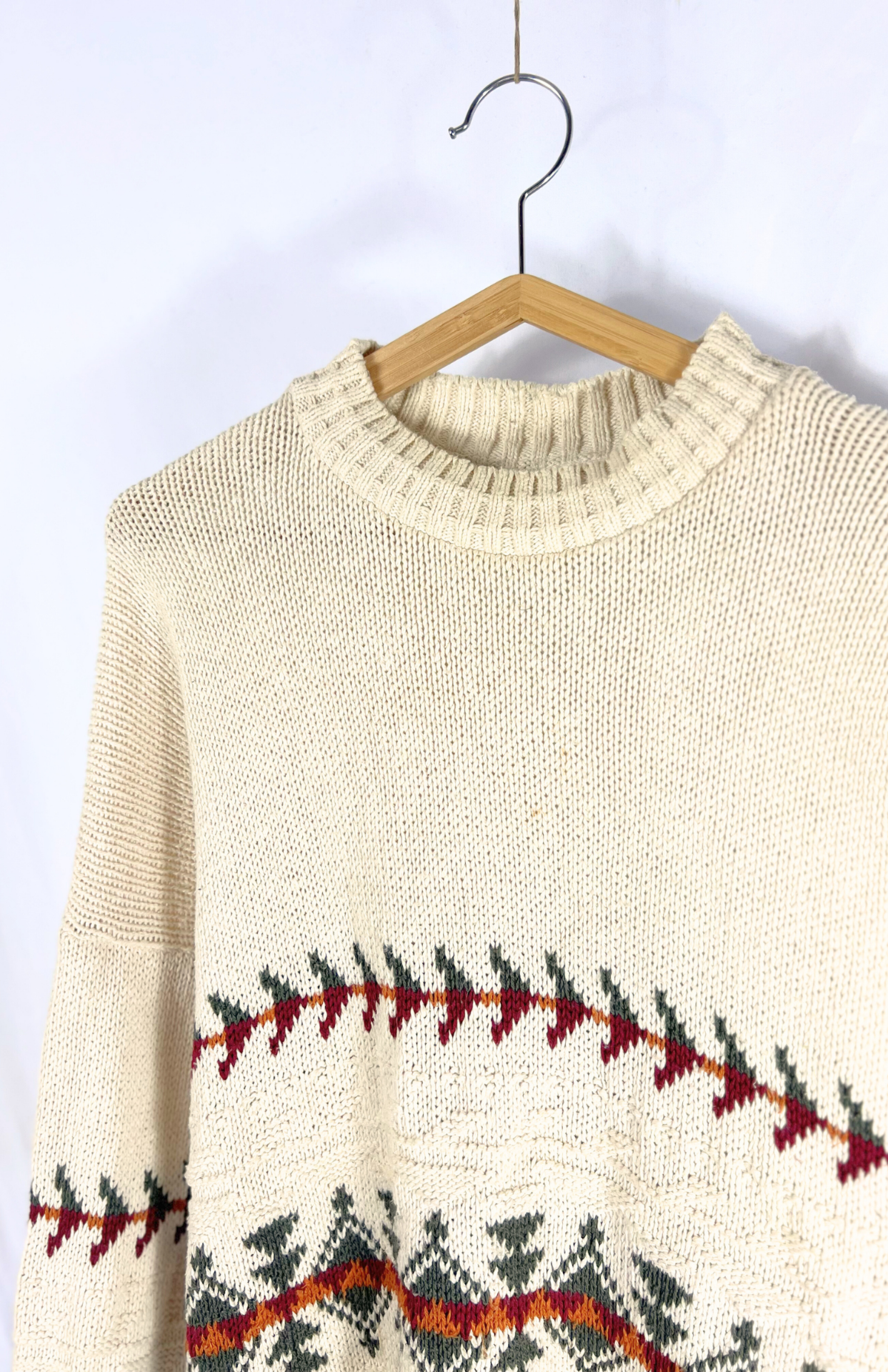 Retro krémový svetr se vzory. Silný bavlněný úplet. Pánský / unisex kousek.