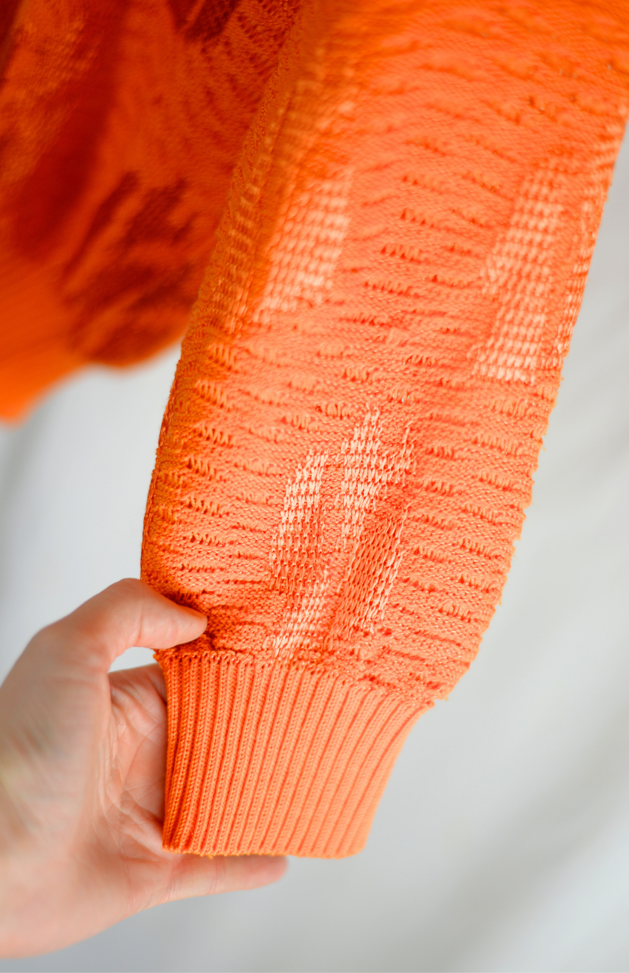 Retro oranžový svetr s abstraktním vzorem v saténové nitce připomínajícím plamínky.Stav: Ve skvělém stavu, bez vad.Materiál: 40% bavlna, 30% viskóza, 30% akryl
