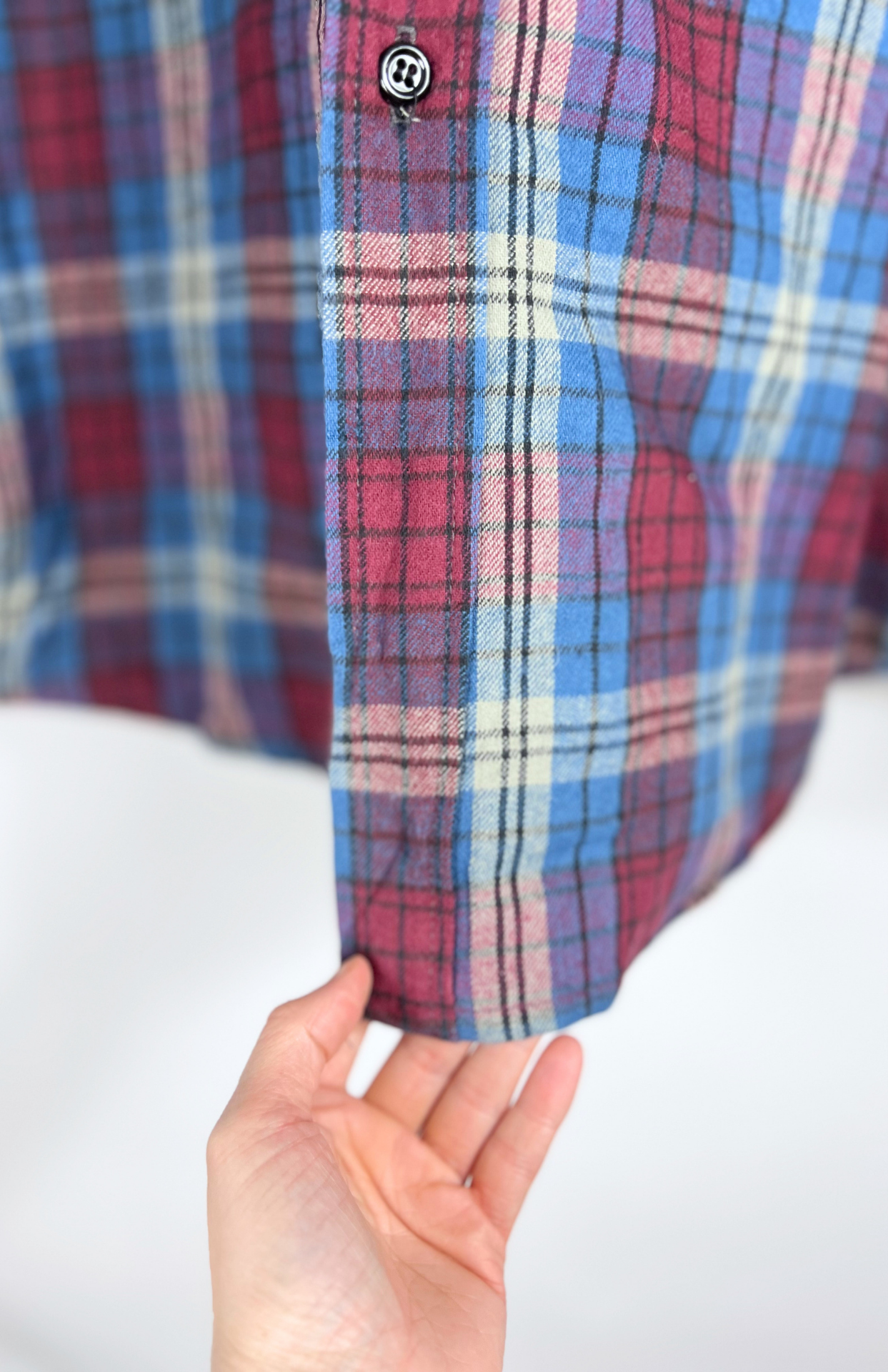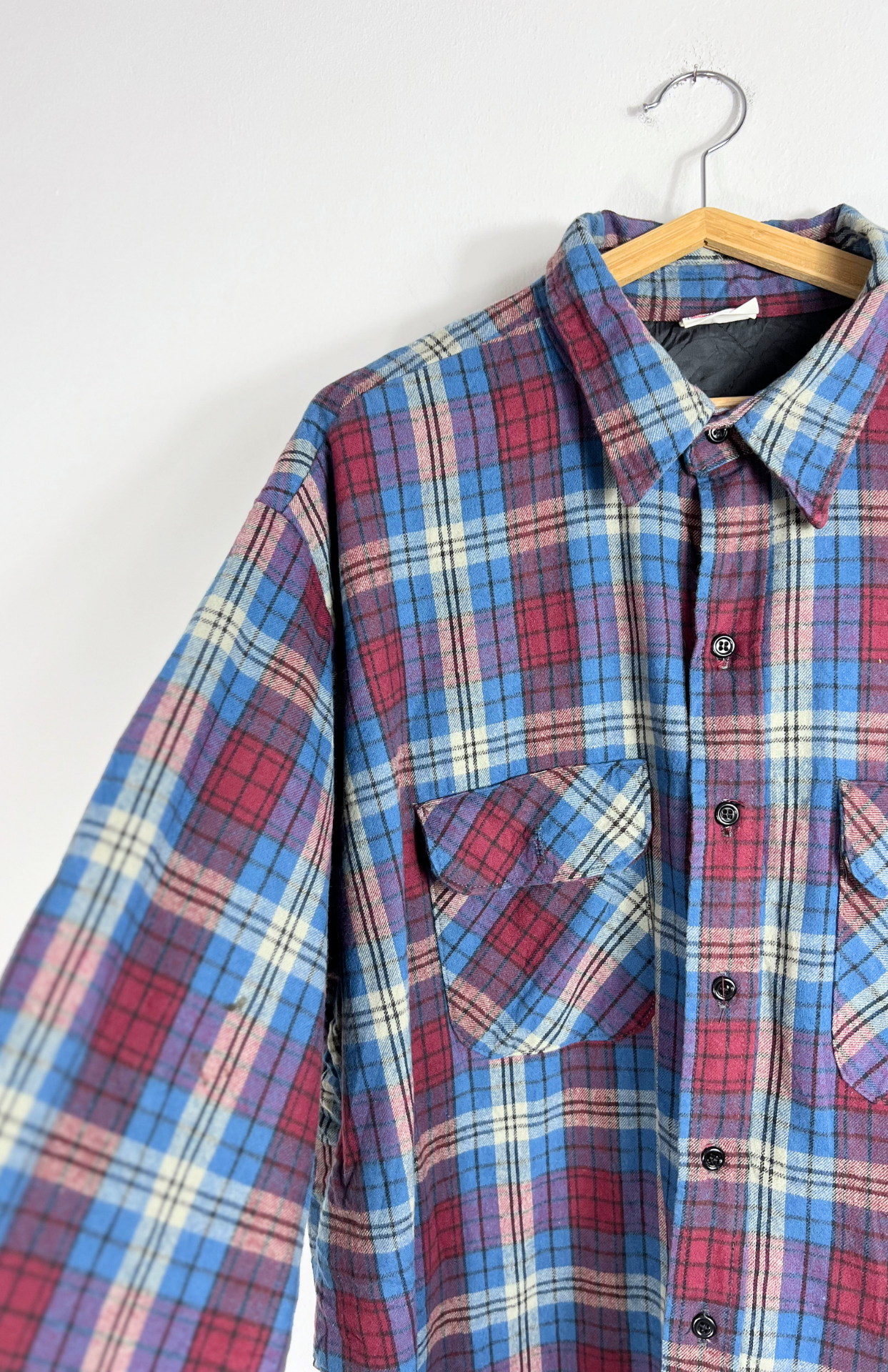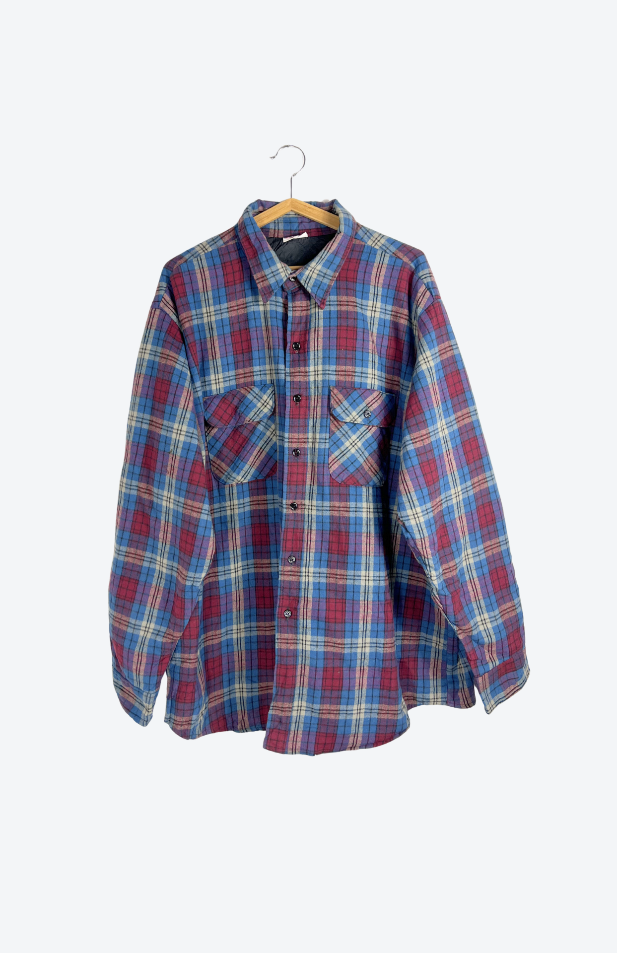 Retro kostkovaná zateplená flanelka. Má kapsy na hrudi, propínání na knoflíčky a pěkný límeček. Uvnitř je zateplená jako lehčí bunda. Ideální kousek k táborákům a na výlety. Pánská / oversize unisex.