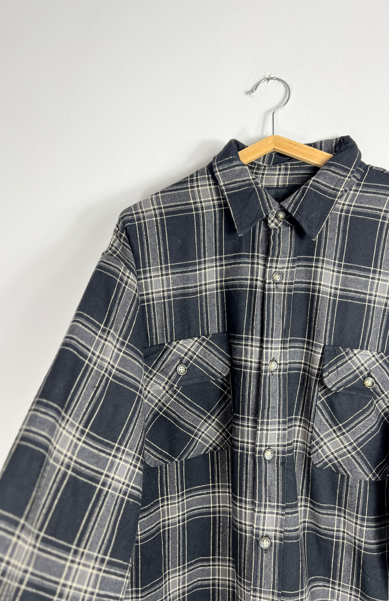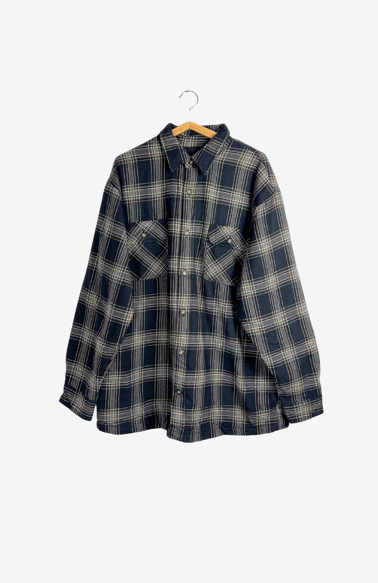 Retro kostkovaná zateplená flanelka. Má kapsy na hrudi, propínání na knoflíčky a pěkný límeček. Uvnitř je zateplená jako lehčí bunda. Ideální kousek k táborákům a na výlety. Pánská / oversize unisex.