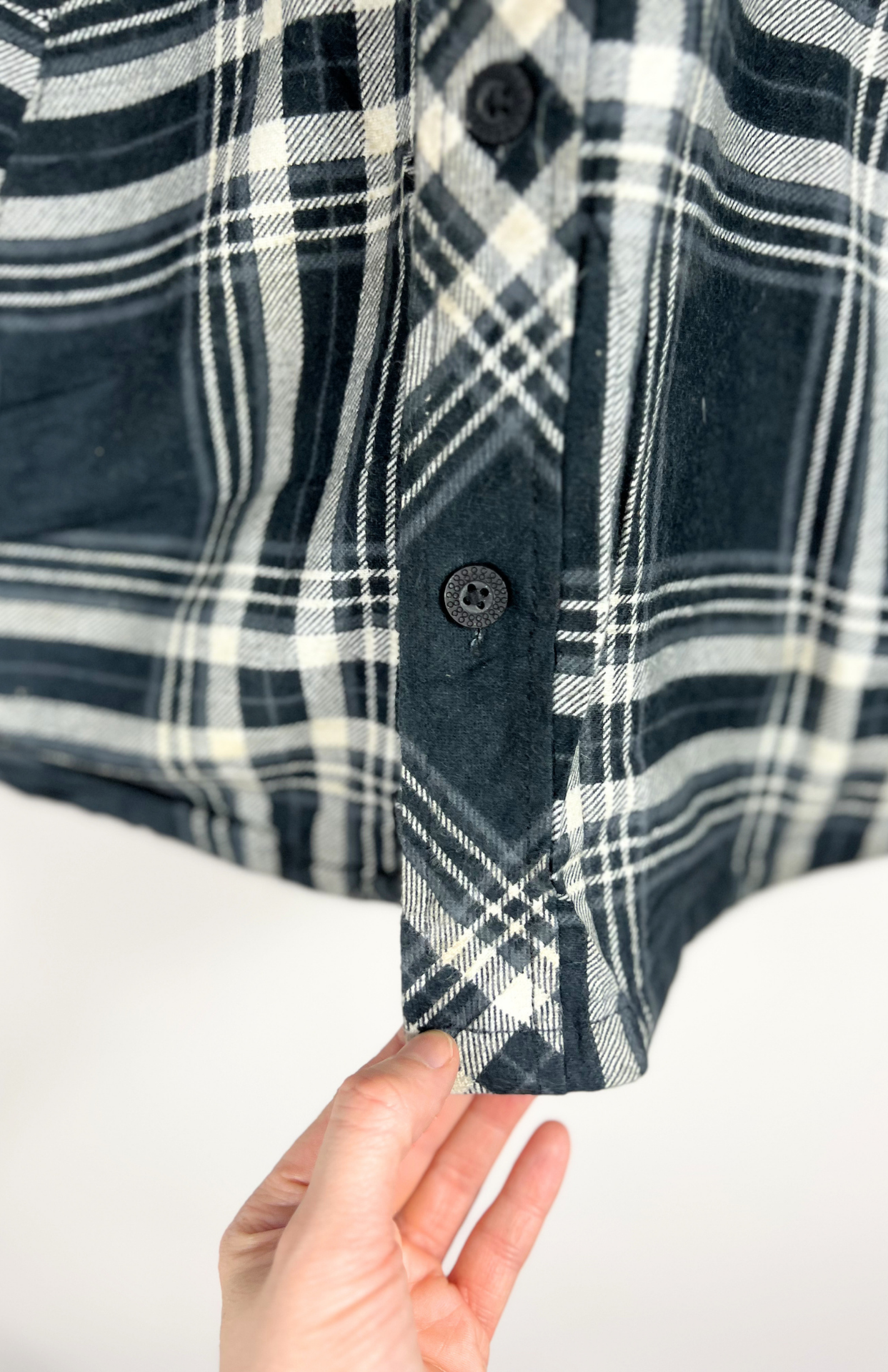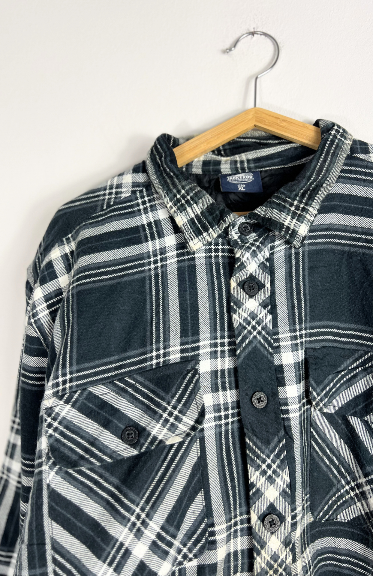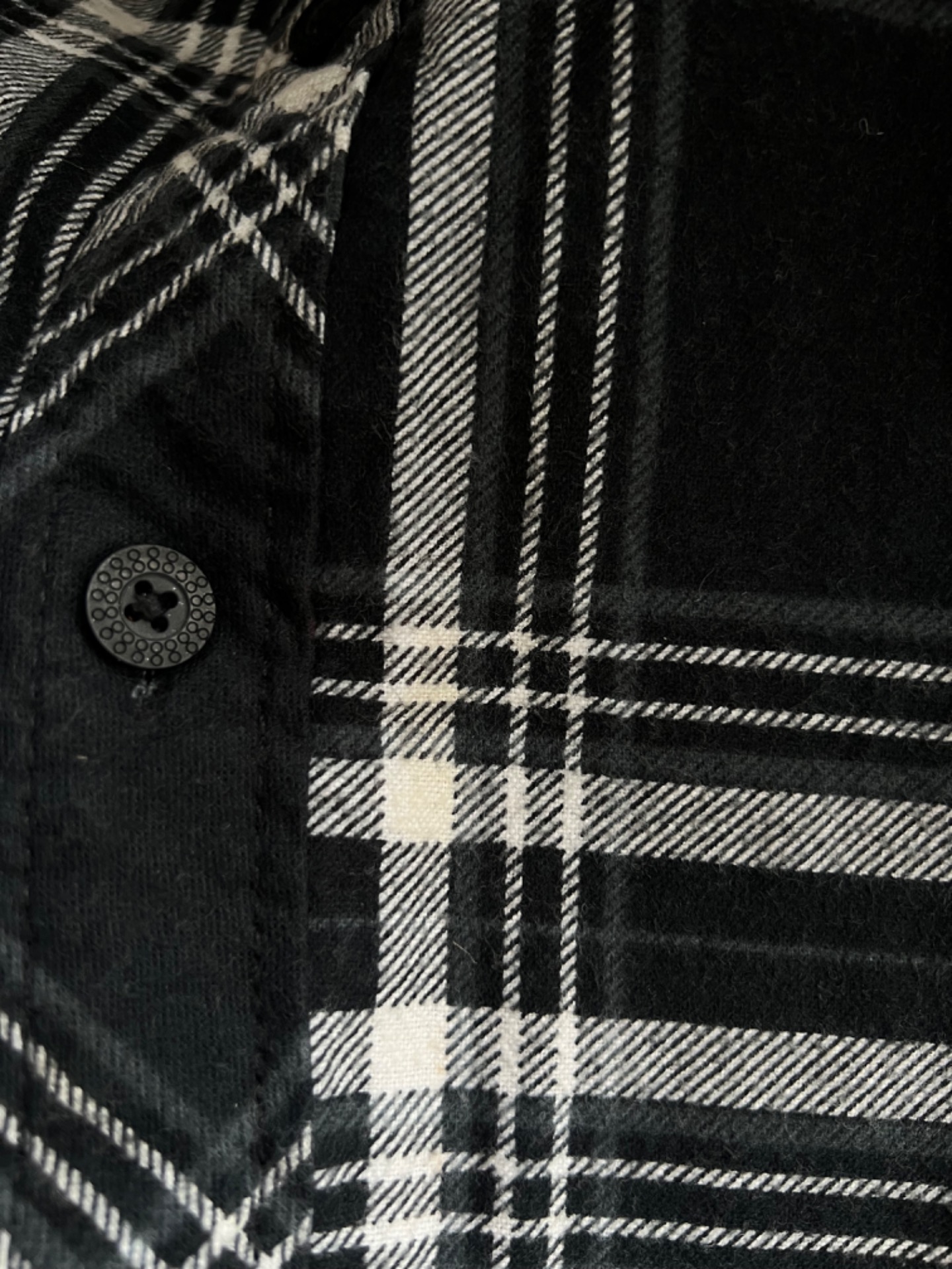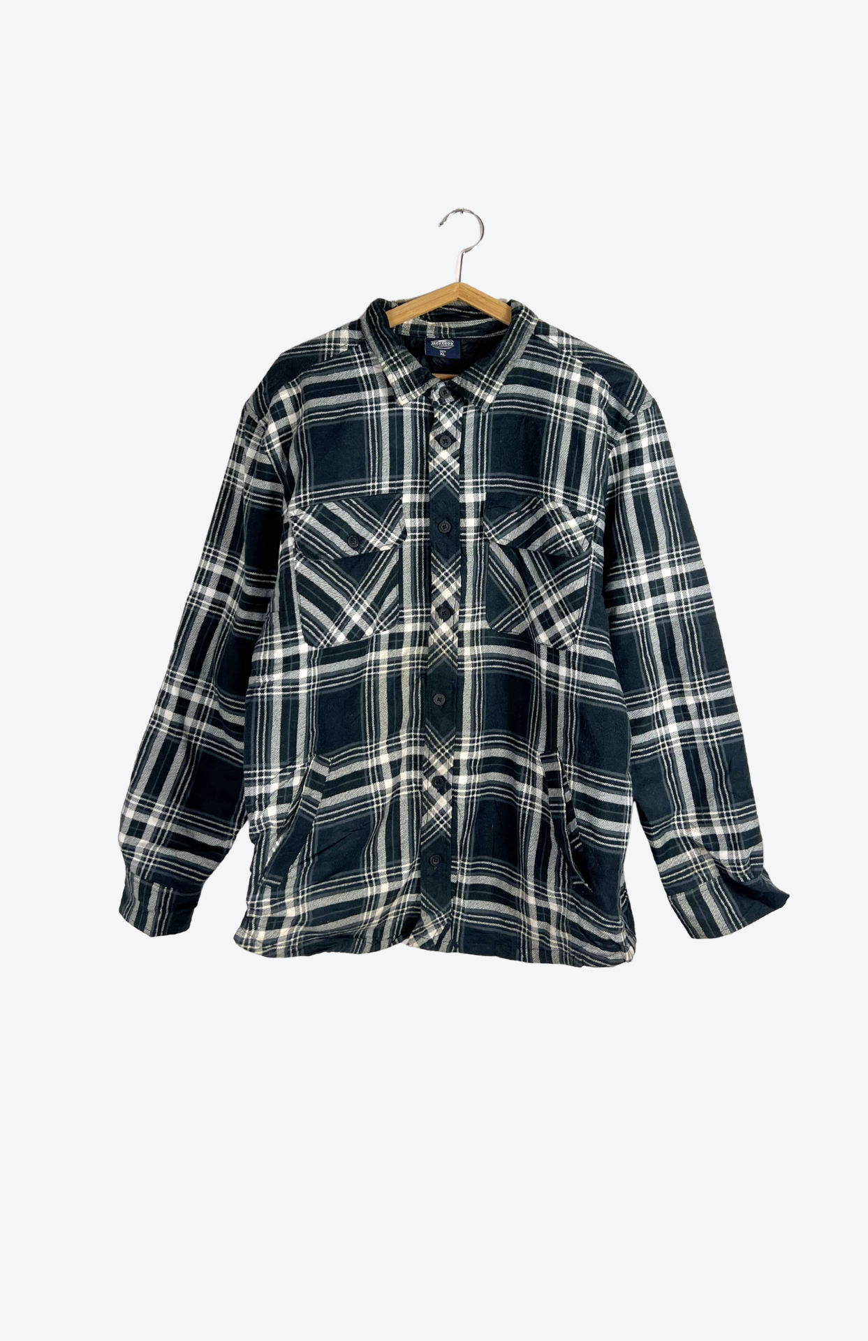 Retro kostkovaná zateplená flanelka. Má kapsy na hrudi, propínání na knoflíčky a pěkný límeček. Uvnitř je zateplená jako lehčí bunda. Ideální kousek k táborákům a na výlety. Pánská / oversize unisex.