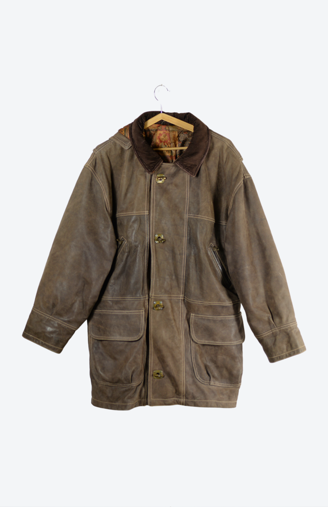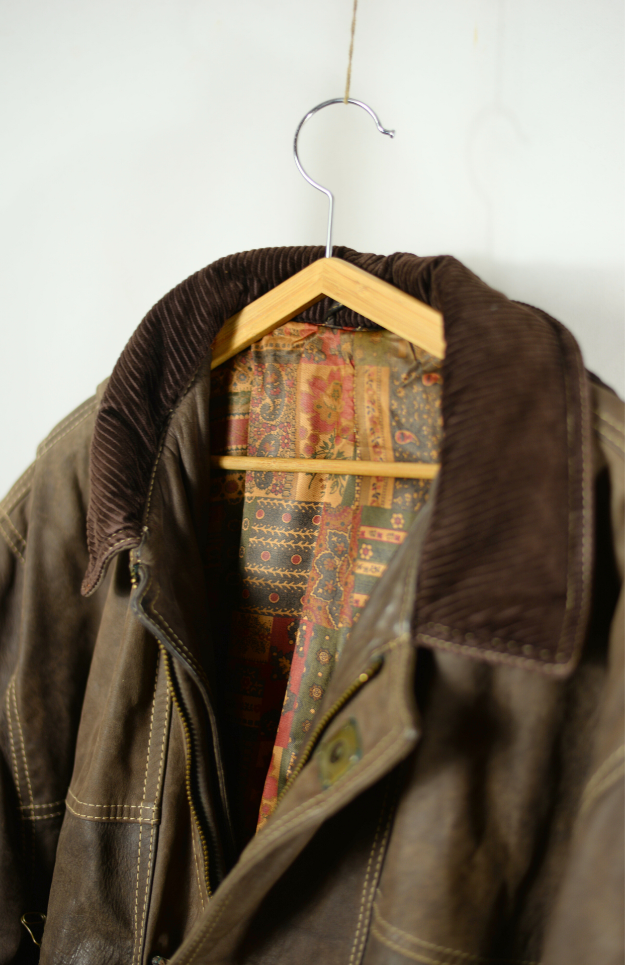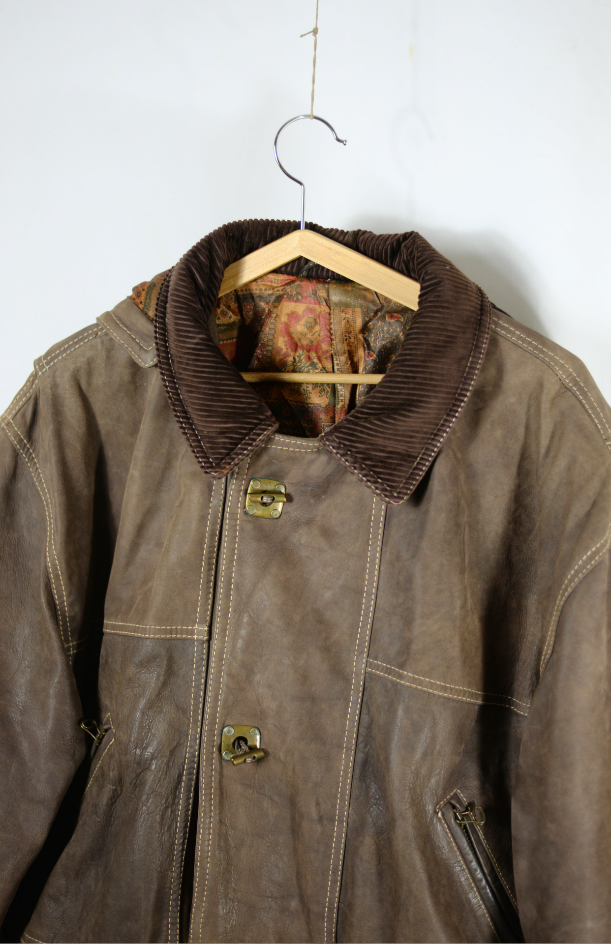 Silná kožená retro bunda. Oldschool kousek s manšetrovým límečkem a vzorovanou saténovou podšívkou. Má na zim odnímatelnou kapuci s kšiltem. Z hutné těžké kůže, skvělá i na zimu. Pánská / unisex pro odvážné (je hodně těžká). Velmi pěkně zpracovaná.