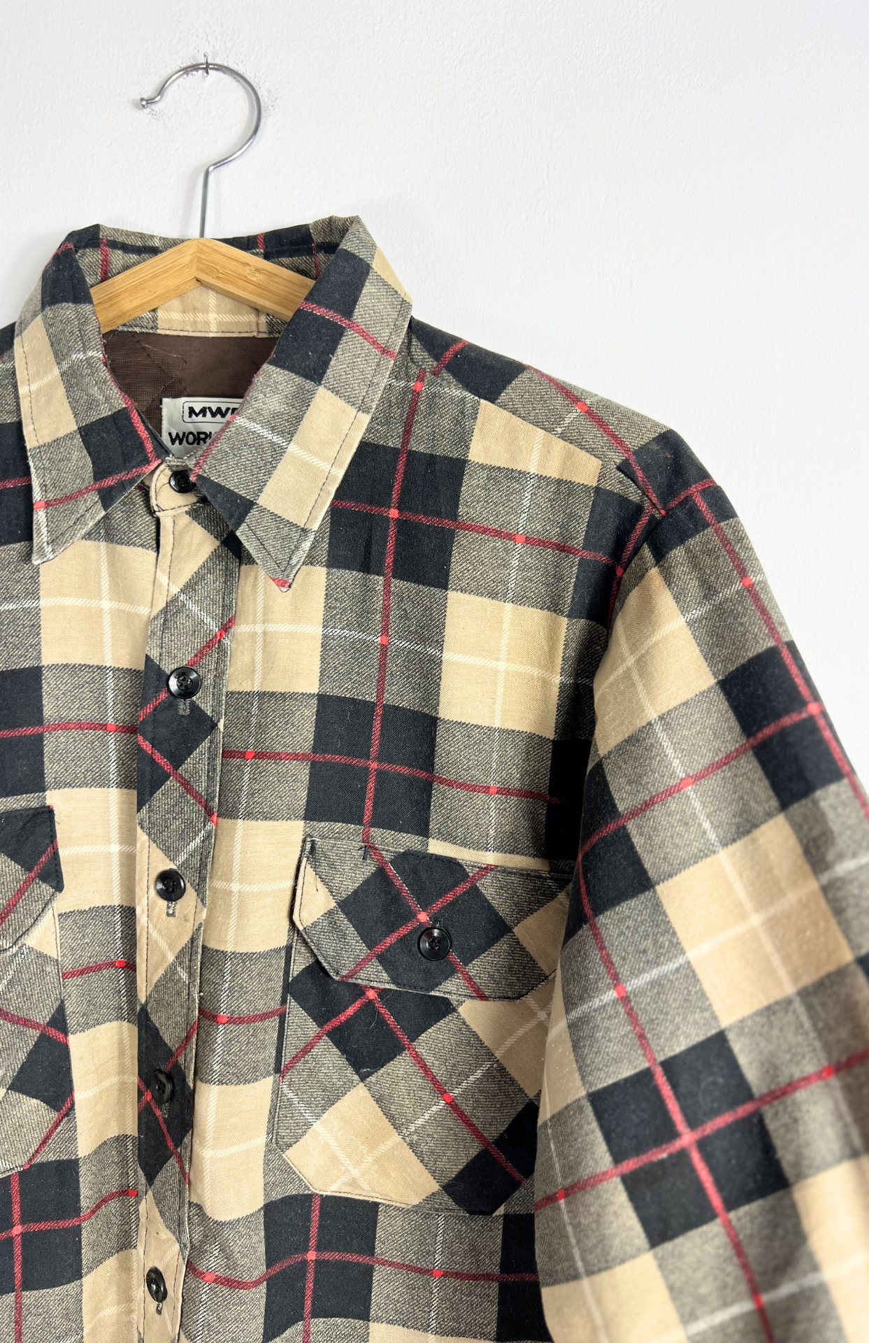 Retro kostkovaná zateplená flanelka. Má kapsy na hrudi, propínání na knoflíčky a pěkný límeček. Uvnitř je zateplená jako lehčí bunda. Ideální kousek k táborákům a na výlety. Pánská / oversize unisex.