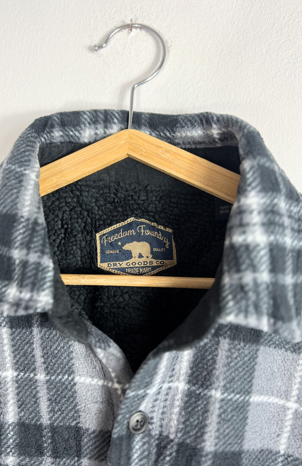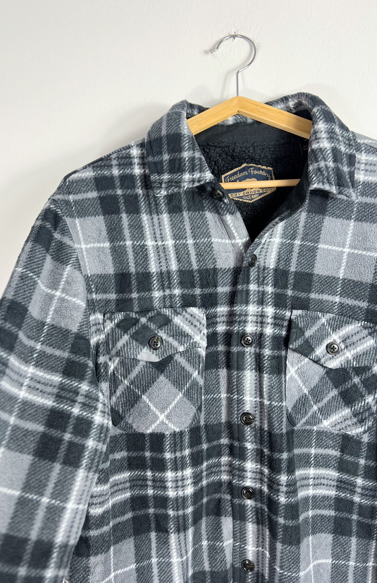 Retro kostkovaná zateplená flanelka. Má kapsy na hrudi, propínání na knoflíčky a pěkný límeček. Uvnitř je zateplená kožíškem jako lehčí bunda. Ideální kousek k táborákům a na výlety. Pánská / oversize unisex.