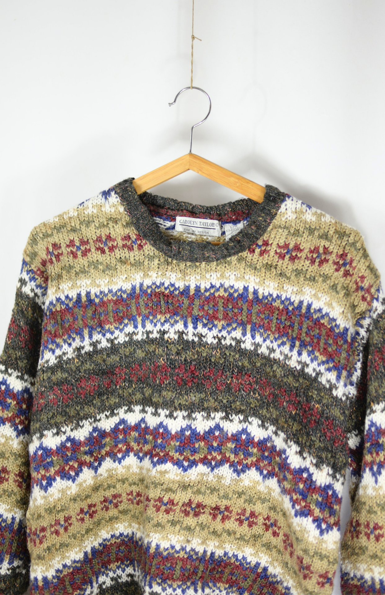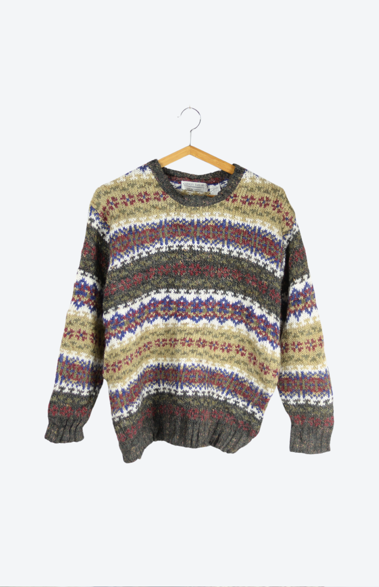 Vintage svetr se vzorovanými proužky. Silnější úplet se špetkou vlny. Volný střih.Stav: Vintage kousek v perfektním stavu, bez vad.