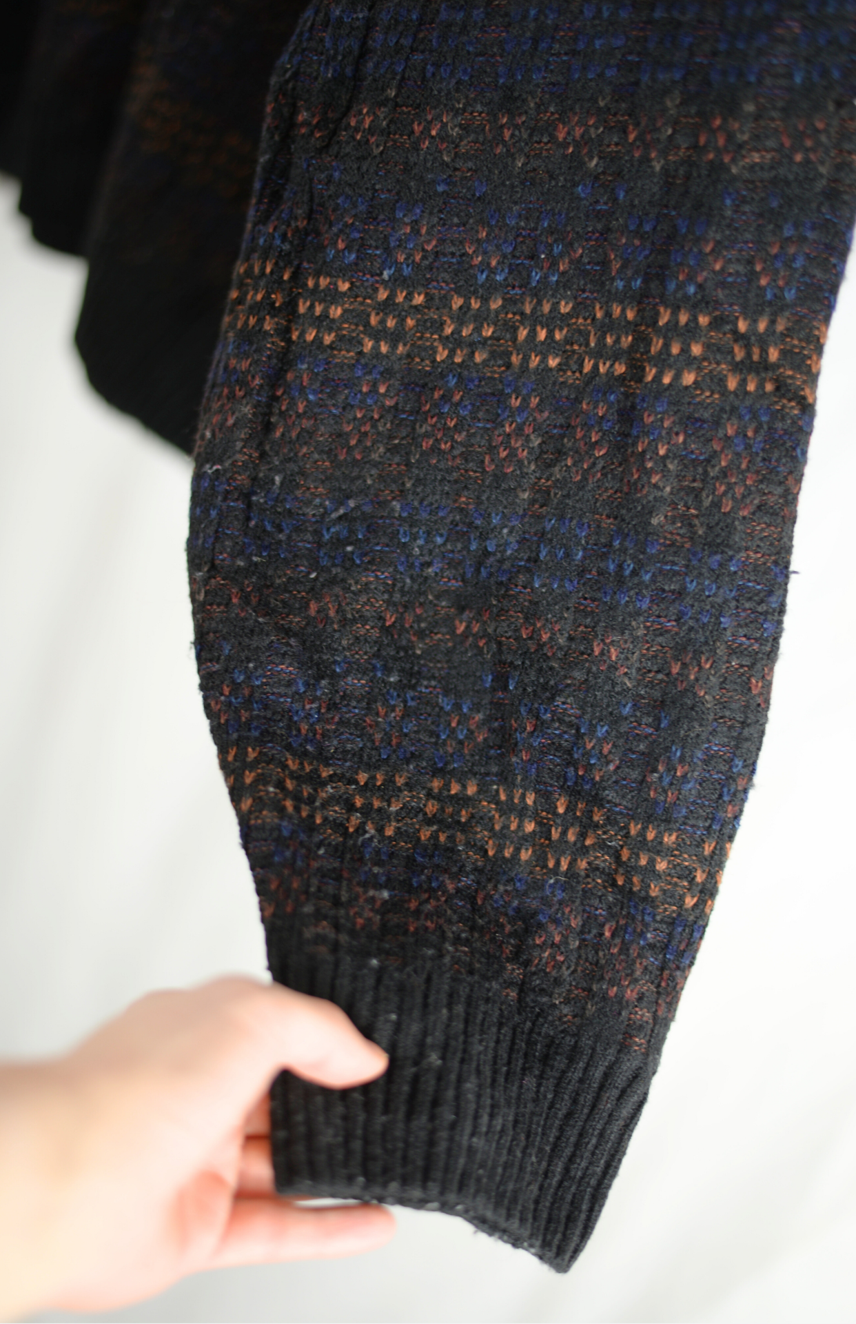 Retro vzorovaný tmavý svetr XL